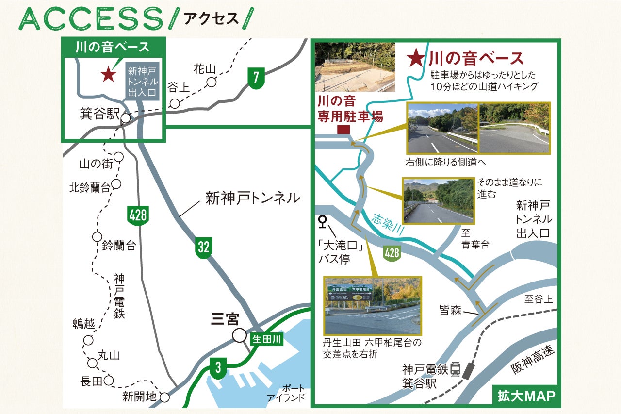 都市部と農村部が近いことが神戸の特性の一つであり、ここKOBE川の音ベースも周囲に里山があるロケーションながら、都市部から車ですぐに来ることができます。