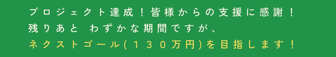 皆様からのたくさんのご支援をいただき、4月30日に、プロジェクトを達成することができました!(5/4)