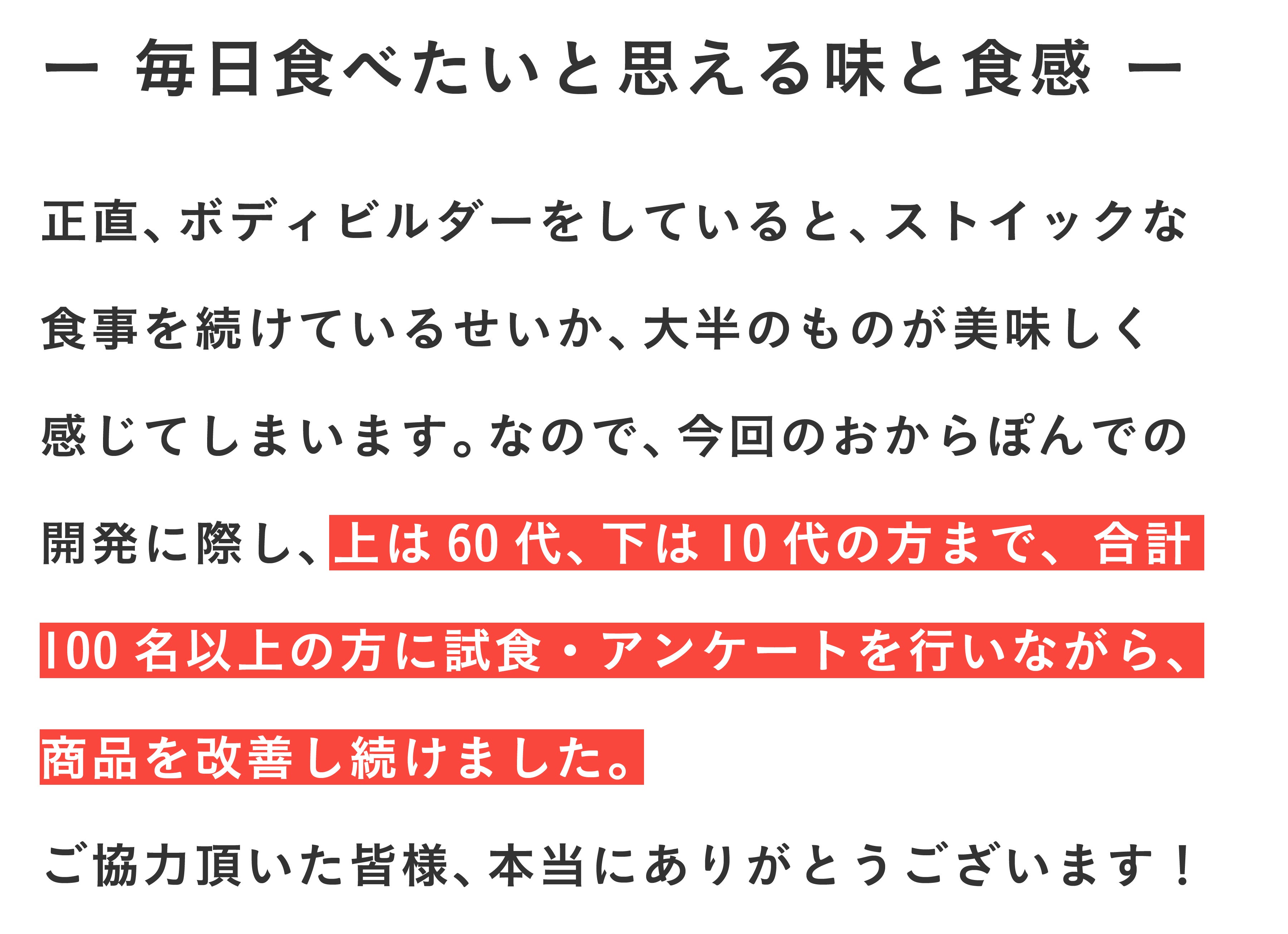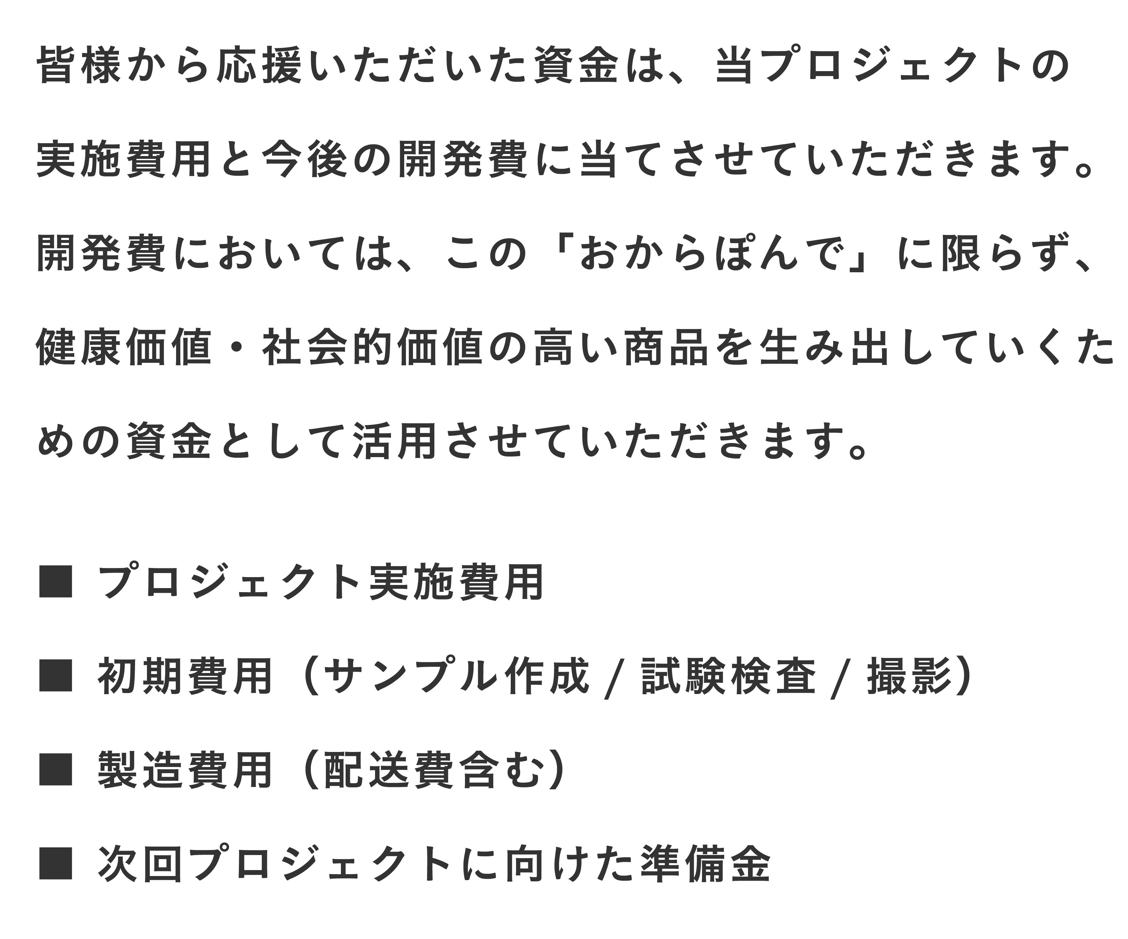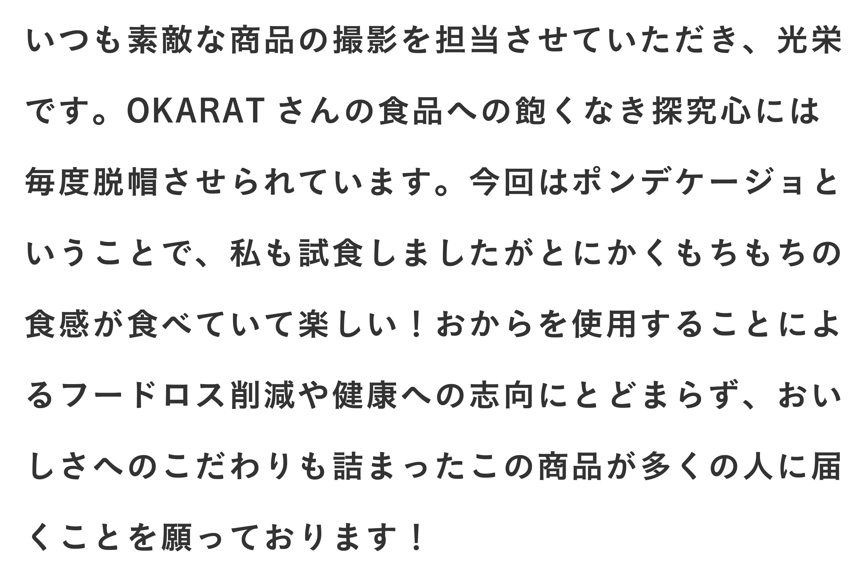 2023/08/08 18:00(株)オカラテクノロジズ代表の山内です。改めて、、、この度は多大なるご支援、心より感謝申し上げます。昨日をもちまして、全てのリターン品の発送を完了致しました。順次皆様のお手元に商品が届いていることかと存じます。そして、以下2点ご連絡させて頂きます!①インタビューご協力依頼おからは食物繊維が豊富であるが故に、工場の機械に詰まりが起こりやすく、本おからぽんでの製法にもかなり力を入れました。しかし、まだまだ皆さまにとって、美味しく、ヘルシーで、使いやすい商品づくりをするべくOKARATは尽力致します。そこで、商品を試してくださった皆様にぜひインタビューのご協力をお願いしたく思っております…!メールにて、インタビュー依頼をさせて頂きますので、少しでも興味がある方はご返信いただけますと嬉しいです!皆様の一声がより良い製品づくりの力になります。②一般販売開始と限定クーポンに関してそして、ついに公式HPでも一般販売を開始致しました。https://okarat.jp/同封しているリーフレットにも記載していますが、本プロジェクトをご支援してくださった皆様に限り、”20%オフ”となる8月末までの期間限定クーポンを準備しておりますので、ぜひこの機会にご利用ください!!クーポンコード:Lf20offponde※定期便・単品ともにご利用いただけます。進捗がありましたら改めて報告いたしますので、引き続きOKARATをどうぞよろしくお願いいたします! もっと見る