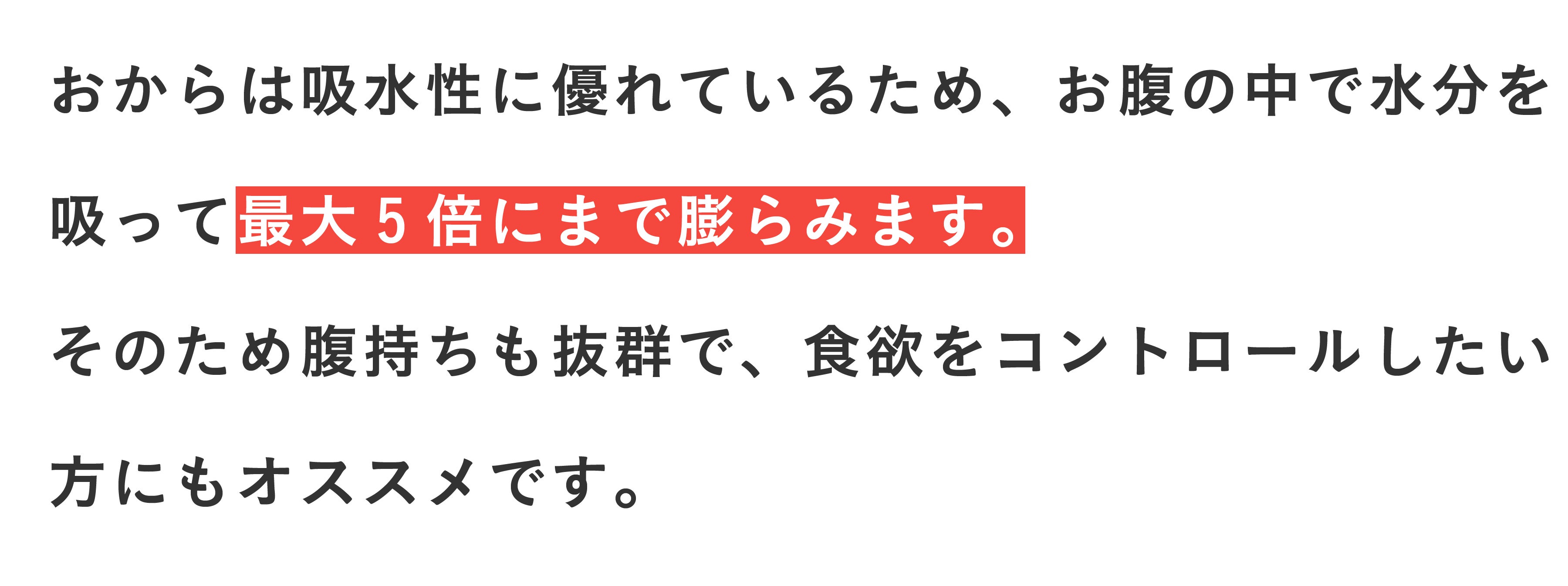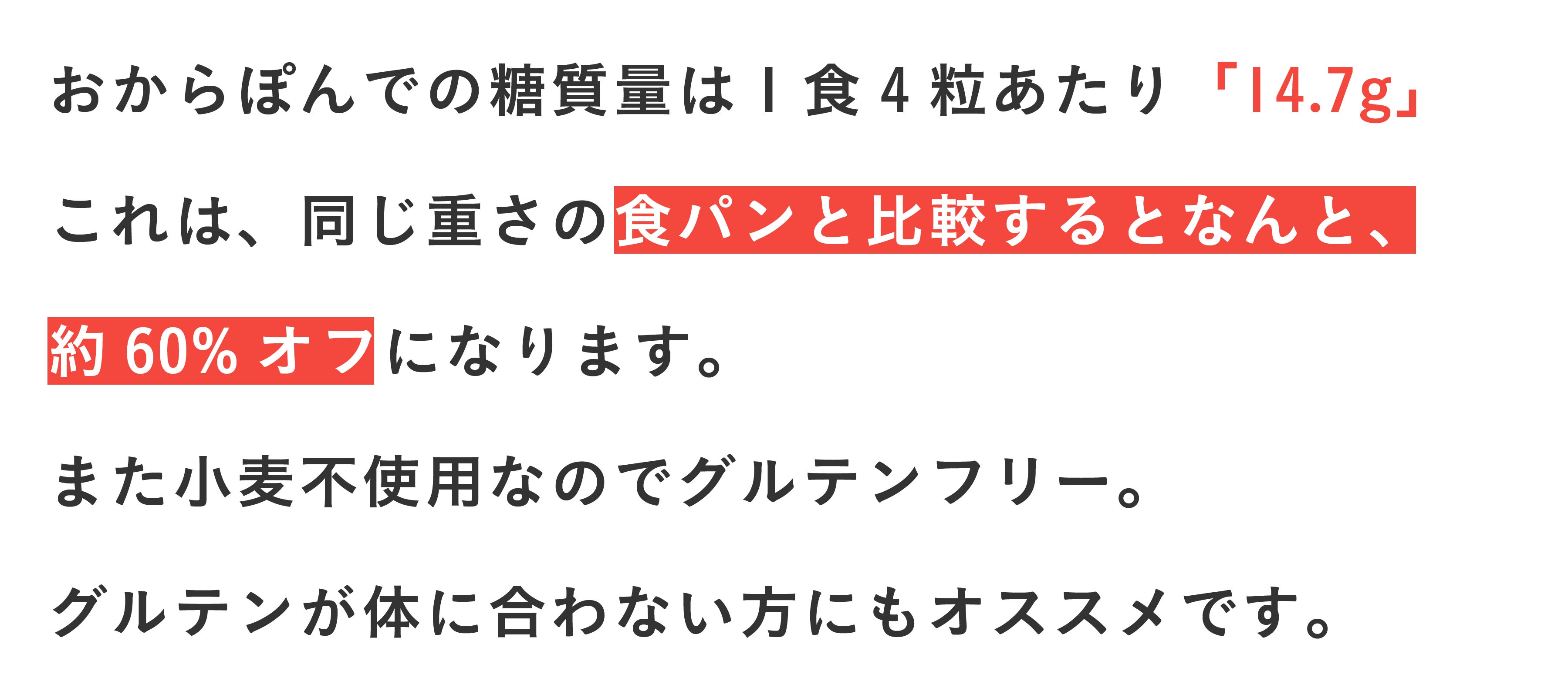 おからには食物繊維が豊富に含まれているため、お腹の中の動きが活発になります。その結果、食べ過ぎてしまうと、お腹が動きすぎてゆるくなってしまう可能性があったり、逆に便秘を起こすこともございます。食べ過ぎの明確な基準はございませんが、まずは1日1~2袋から、ご自身の体調と相談しながらお召し上がりください。
