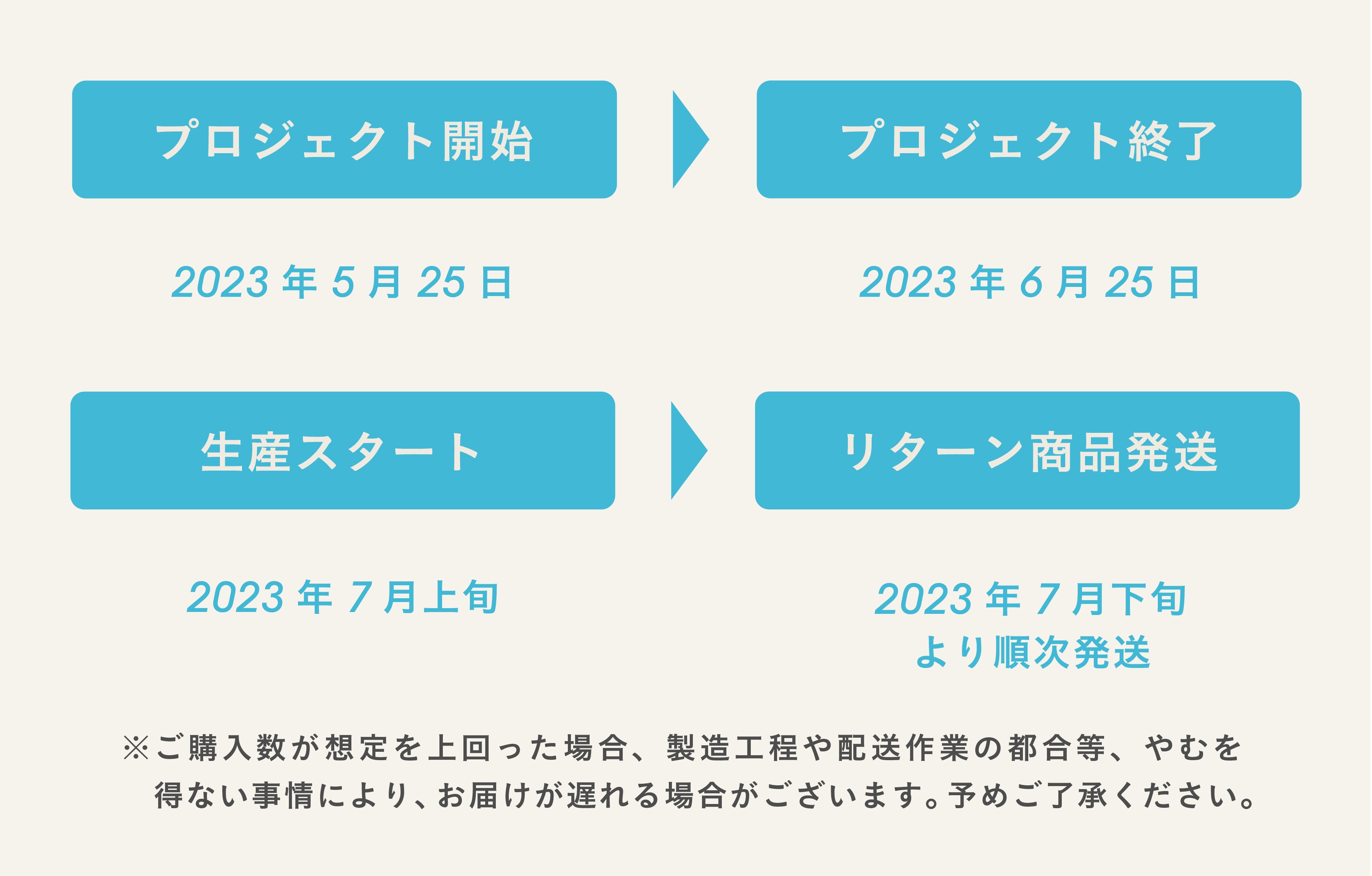 例…3ヶ月分の定期便をご購入いただいた場合、6ヶ月以内に全ての商品を配送いたします。