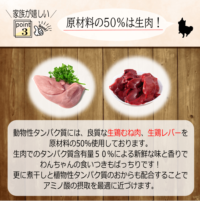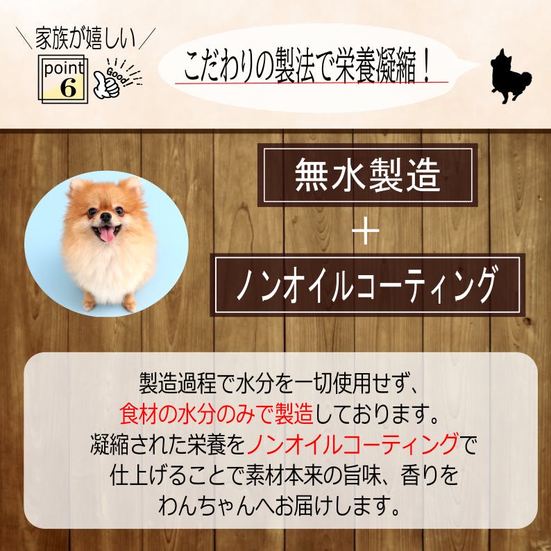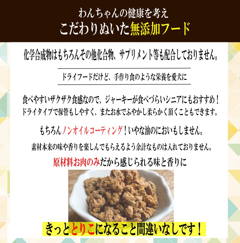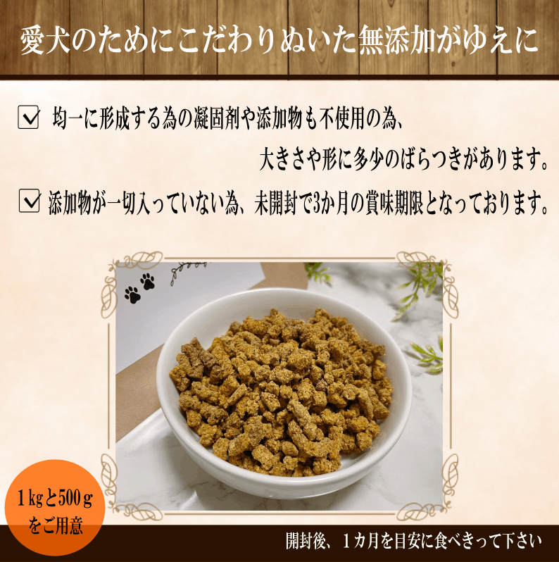 原材料がお肉のみなので、わんちゃんの喰いつきがとてもよく、いつも喜ばれる商品になっております。