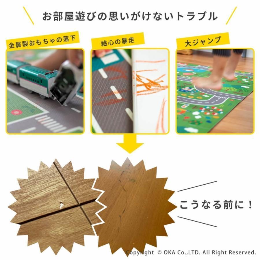 子どもが遊んでいると床を傷つけたり、汚しちゃったなんてことも・・・。ジョイントタイプなので、正方形以外に限らずL字や横長にも。場所や形を問わず敷くことができるのがポイント。