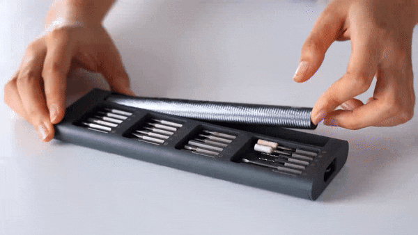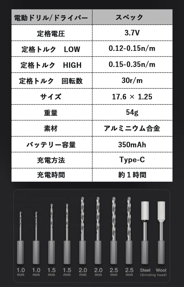 穴あけと磨き加工が可能になる8本のドリルと2本のポリッシャーが付属しています!