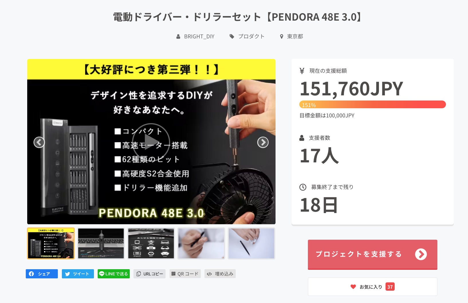 この度は「電動ドライバー・ドリラーセット【PENDORA 48E 3.0】」に支援して頂き、ありがとうございます!
