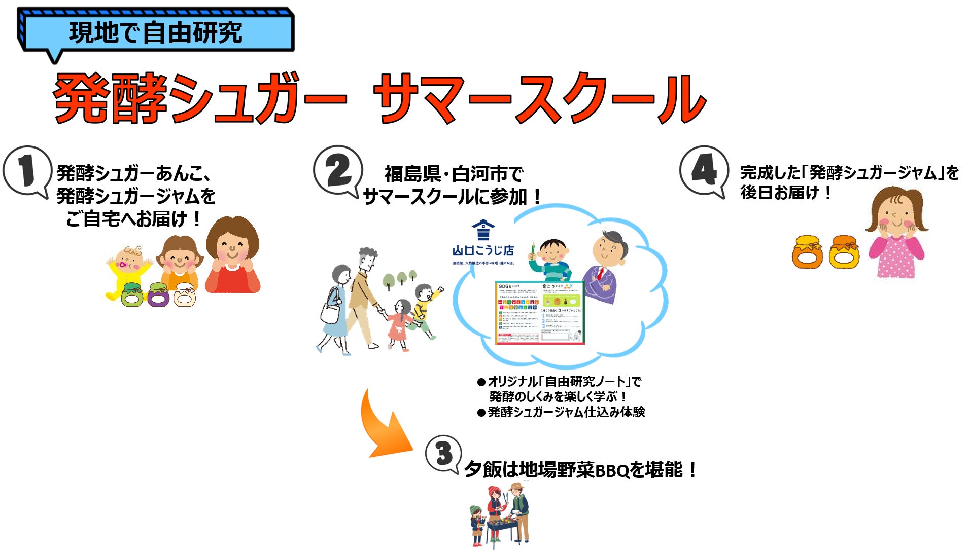 「発酵シュガーサマースクール」のプログラムを、福島県白河市の「山口こうじ店」に来て体験していただけるプランです。