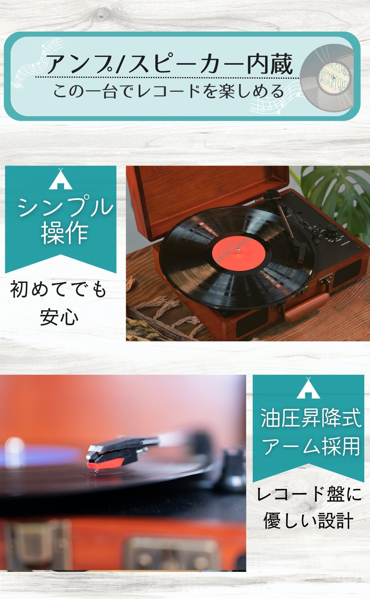 本製品はこれまでレコードに触れたことが無い、レコードを聴いてみたいが敷居が高い、と感じている初心者の方が気軽にチャレンジできるようにシンプルな操作性と手が届きやすい価格設定にこだわって制作しました。本製品を通して皆様に新たな体験を提供できればそれに勝る喜びはございません。