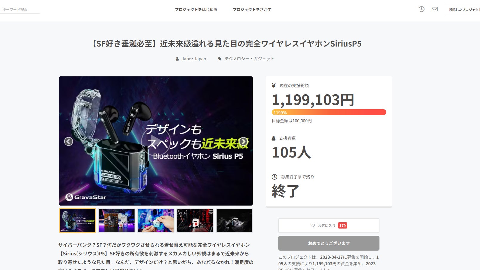 このプロジェクトは、2023/04/27に募集を開始し、 105人の支援により 1,199,103円の資金を集め、 2023/05/18に募集を終了しました