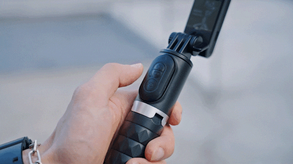 製品側面のモードロックを調整すると、自撮り棒・ジンバルモードの切り替えが可能。多人数撮影、自撮り、撮影、ライブなど様々な状況で活躍します!