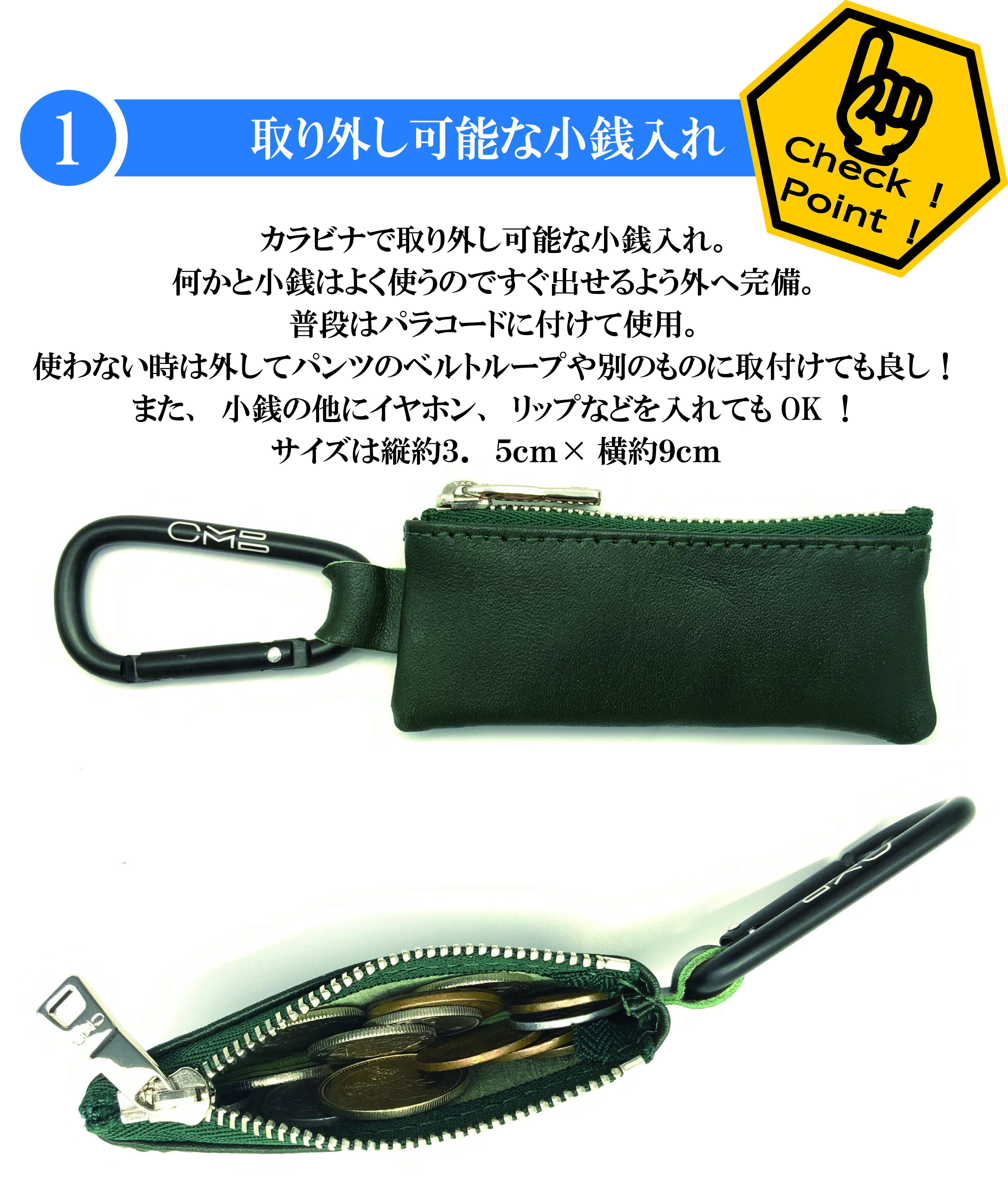 ショルダー紐には、キャンプテントなどに使用されるパラコードを採用。パラコードは対紫外線、色あせない、高い耐磨性、耐荷重なんと340㎏という、丈夫で優れた紐です。そしてインナーコード11本で紐の太さは5mmなので干渉しない太さ。
