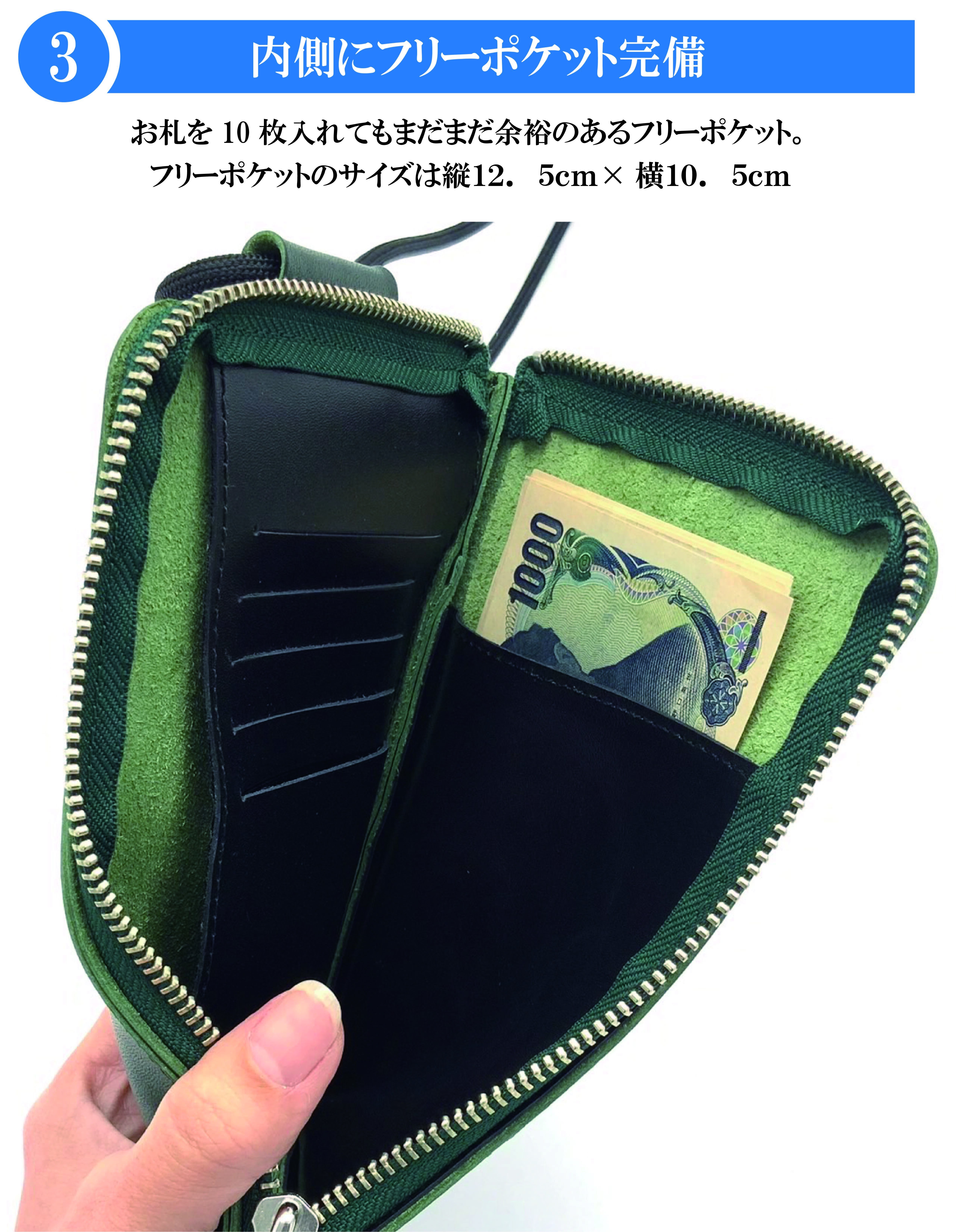 シンプルなルックスですが、お金やスマホだけでなく、柔軟な収納力を発揮します。