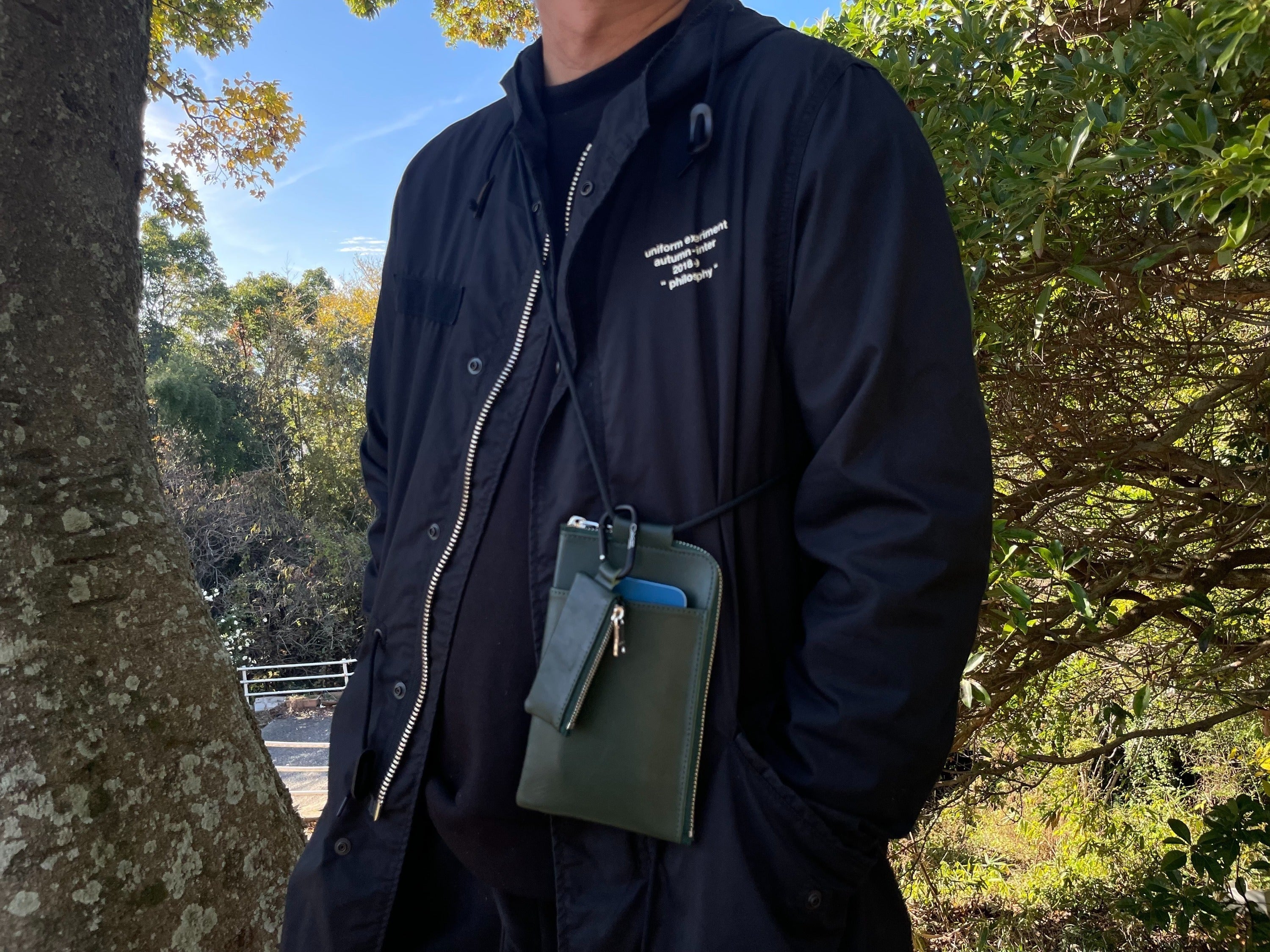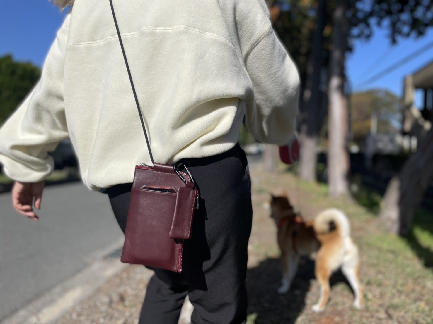 アウトドアシーンにおいて、コンパクトで両手がフリーになるミニショルダーが有難い。
