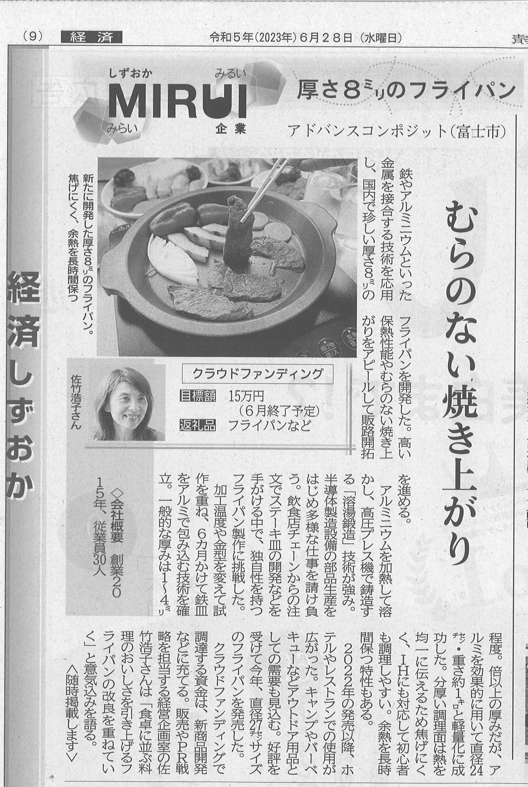 昨日の静岡新聞でしずおかMIRUIプロジェクトの1つとして厚底クッキングプレートが紹介されました!