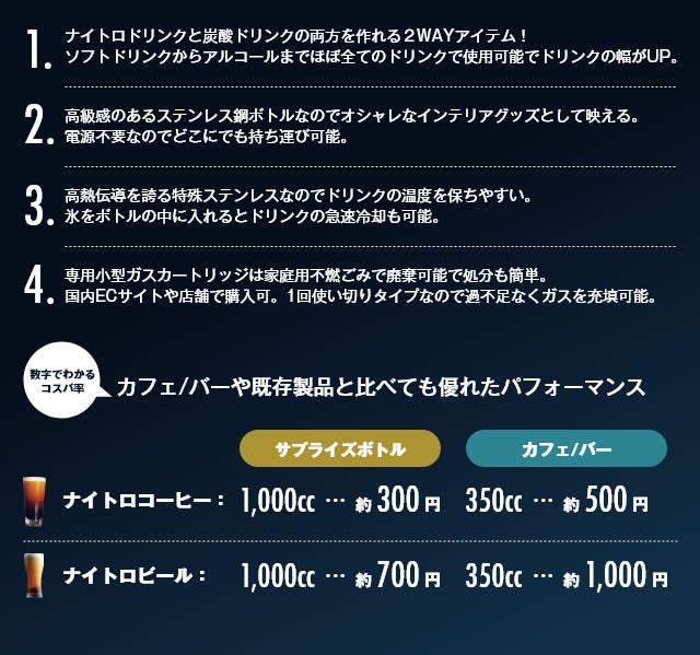 今話題のナイトロビールや炭酸ドリンクをご自分でお手軽に作ることが可能。