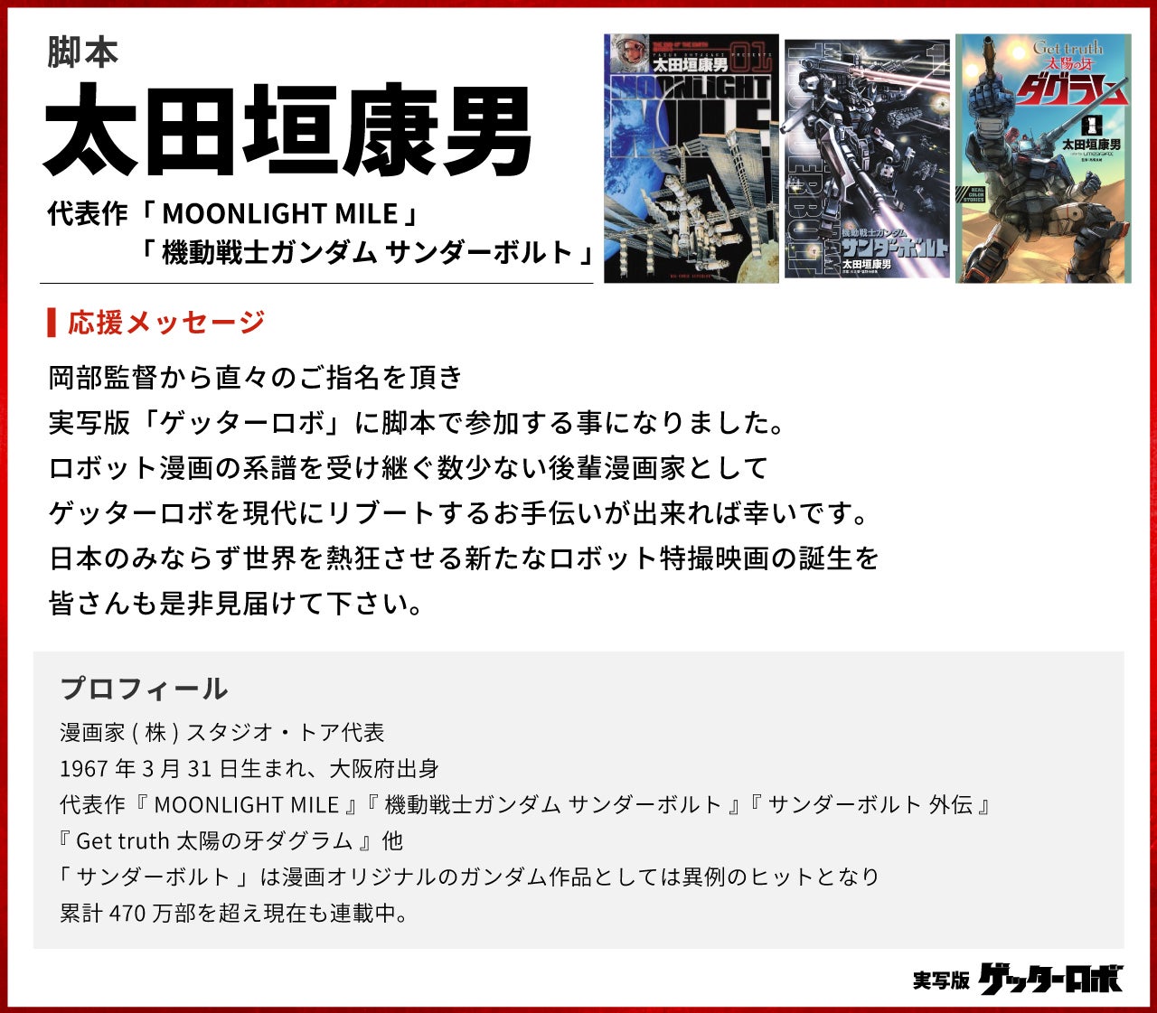岡部監督がゲッター実写かすると聞いてクラファンに参加しました 後岡部監督のおかげで今 真 ゲッターロボにどハマりしてます! 楽しみに待ってます!