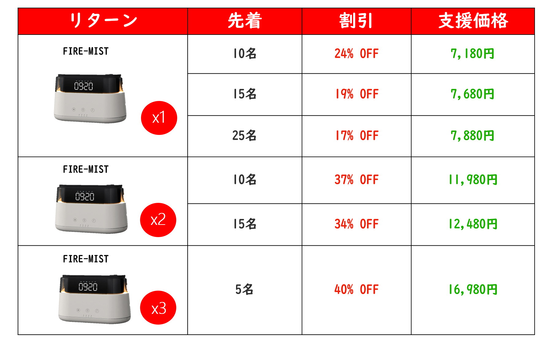 ※想定を上回る皆様から支援を頂き、量産体制を更に充実させることができた場合、一般販売価格が予定価格を下回る可能性がございます。