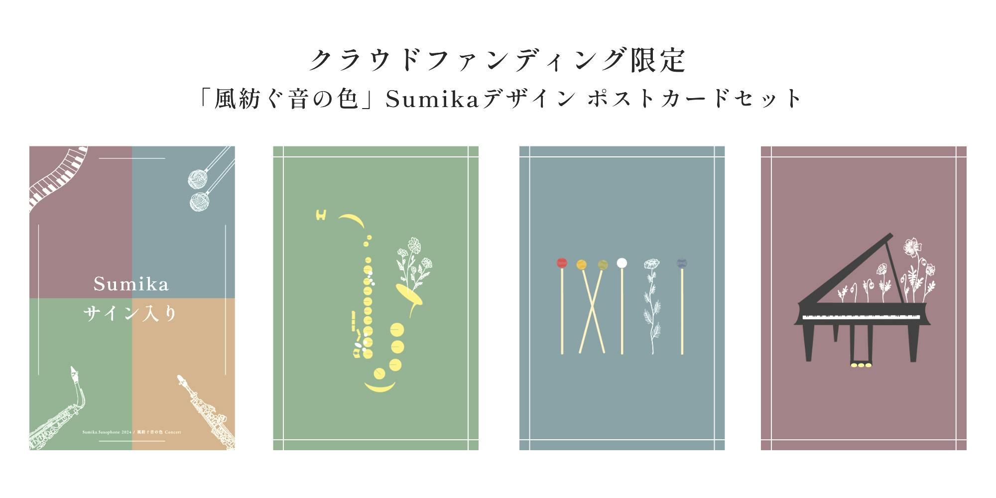 Sax、Marimba、Pianoのオリジナルデザインのポストカード4枚セット。Sumikaによる特別デザインです。(内1枚にSumikaの直筆サイン入り)