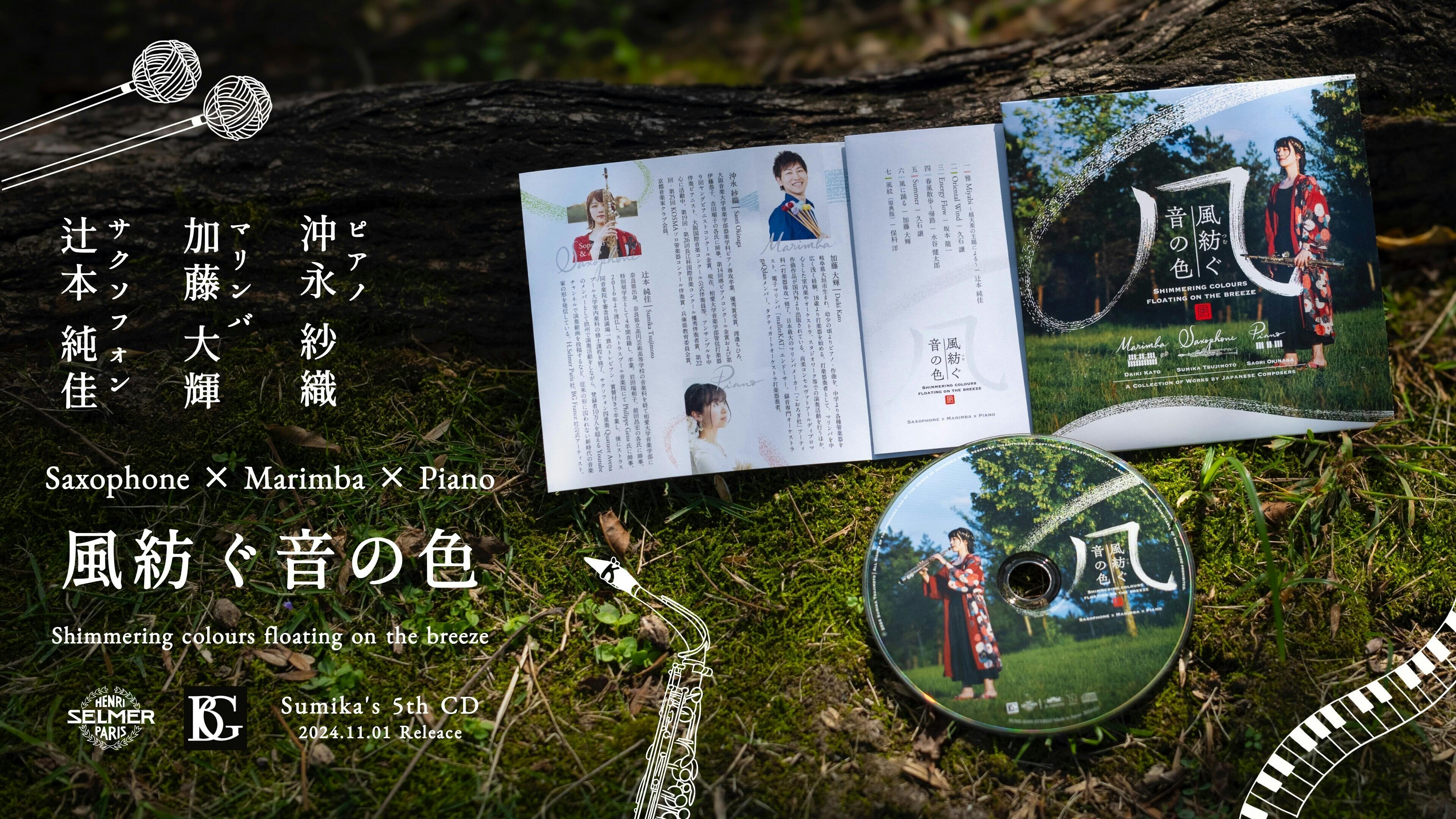 日本を代表する作曲家である久石譲さん、坂本龍一さんの作品に加え、今も愛され続ける吹奏楽コンクール課題曲の名曲・保科洋さんの「風紋」、そしてマリンバを担当いただく加藤大輝さんの作品「風に踊る」、CD「音ノ雨」で作品を書き下ろしていただいた水谷健太郎さんの作品「春風散歩・帰路」、そしてSumika自身が「音野スミカ」として今回のCDのために書き下ろす、ソプラノサクソフォンのための「雅 -Miyabi-」を収録。