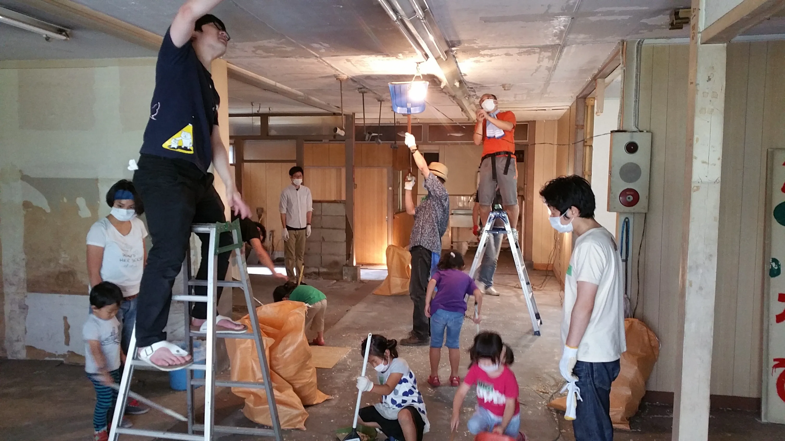 そこから片付けはどんどん進んでいきました。夏休みには、イラストレーターに壁に大きなスイカの絵を描いてもらい、壁のスイカを割るという「スイカ割り」を開催しました。