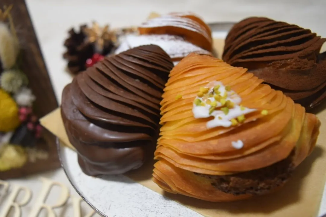 イタリアナポリの伝統菓子でバリバリとした食感の生地のなかにクリームチーズをベースに作ったやわらかい生地が入っています。