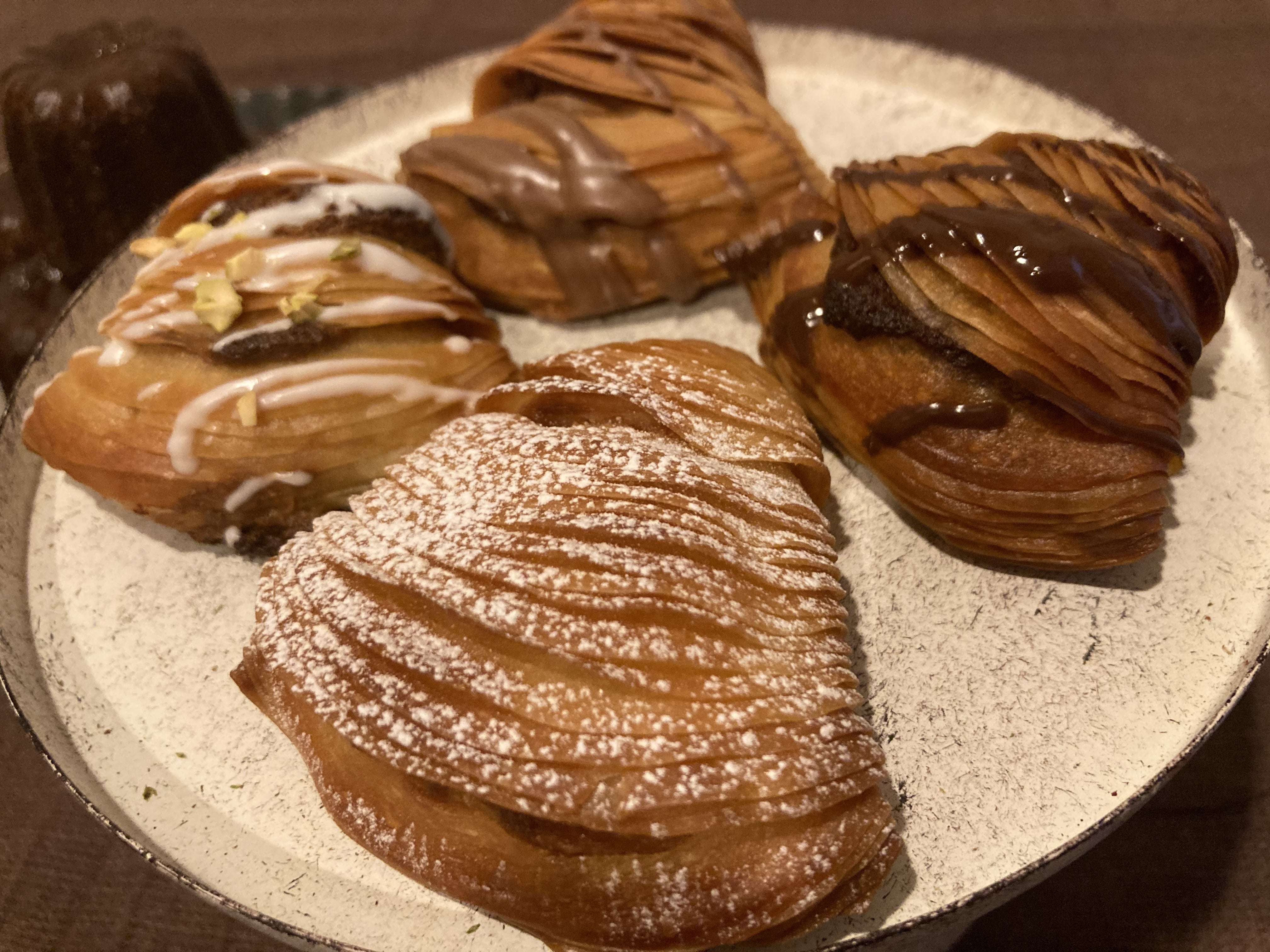 イタリアナポリの伝統菓子でバリバリとした食感の生地のなかにクリームチーズをベースに作ったやわらかい生地が入っています。