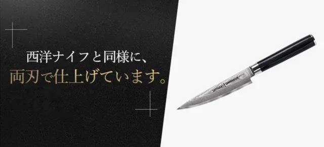 【ダマスカス】は西洋ナイフと同様に両刃で仕上げています。