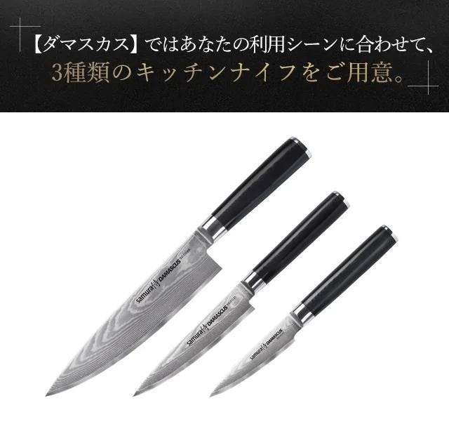 【ダマスカス】ではあなたの利用シーンに合わせて3種類のキッチンナイフをご用意しました。
