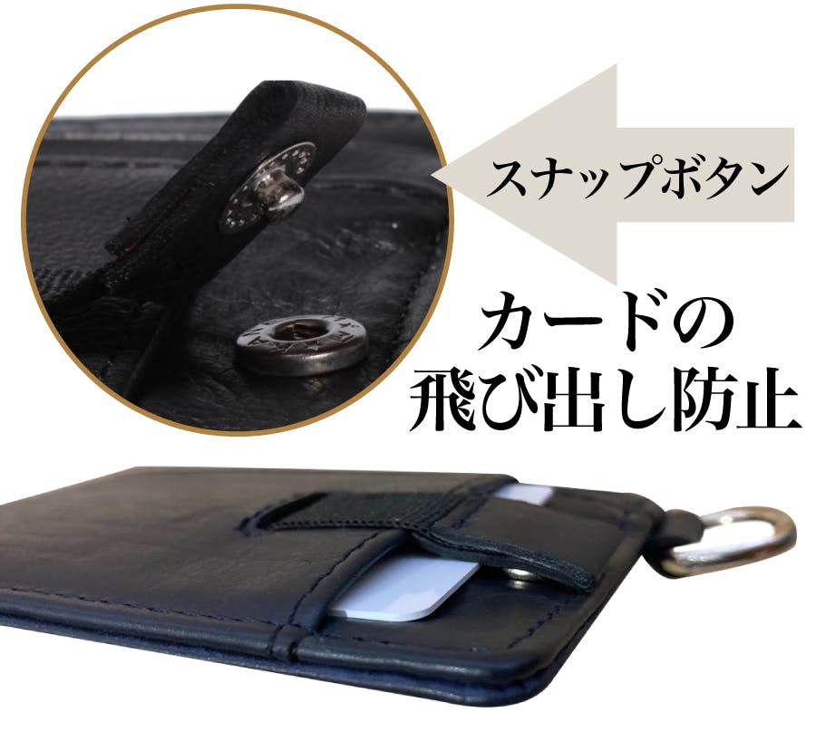 スナップボタンでカードの飛び出しも防止します