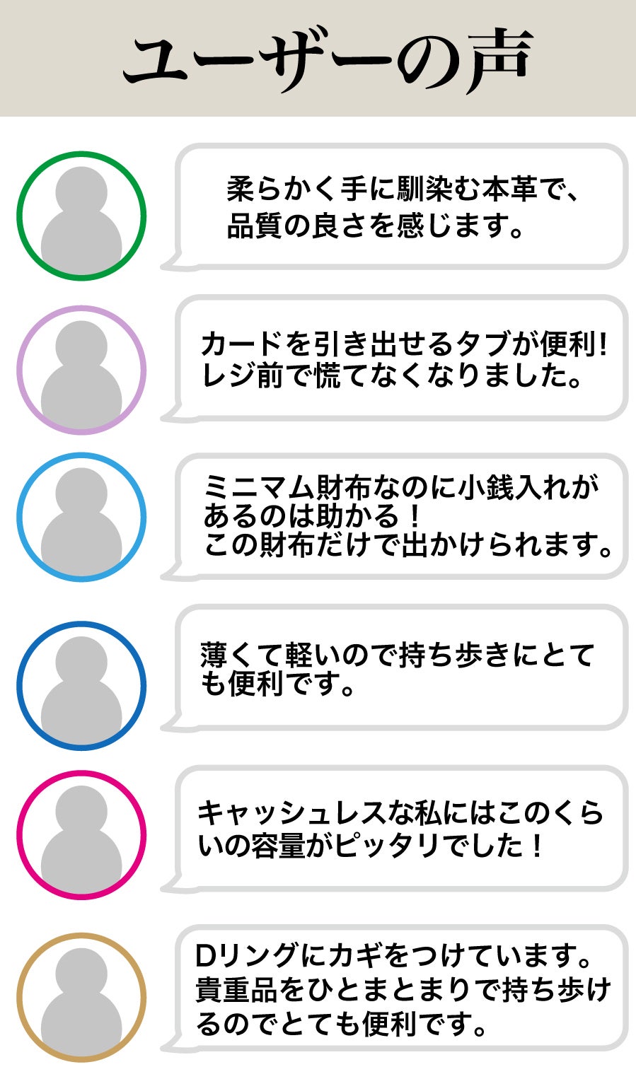 もっと日々の生活のニーズにマッチした機能を考えて、今の時代に本当に必要な機能に絞った財布を考えたとき、個人個人の様々なニーズにあった「ミニ財布」を提案できるのでは?と考えた末に行きついた商品が、今回提案させて頂く財布です。