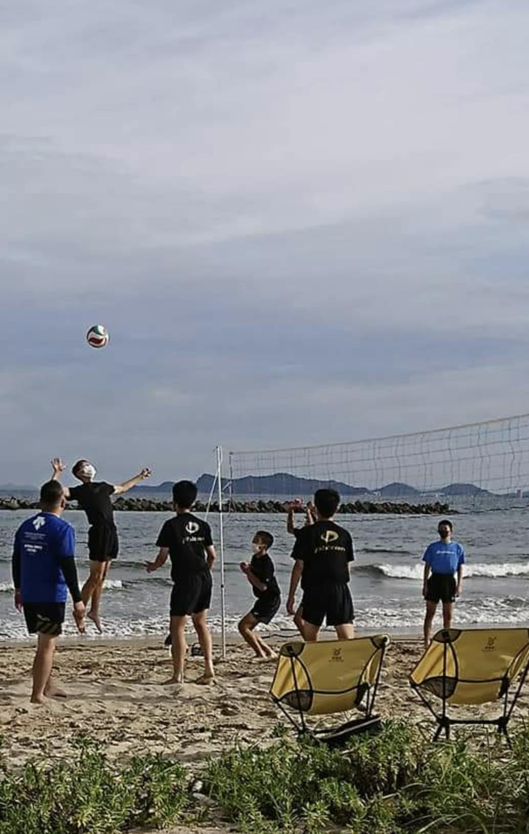 時には練習場所が確保できなく、近所の砂浜に手作りポールに手作りネットを張り、練習となっても、嫌な顔一つせず、全力で取り組む子ども達には心打たれます。