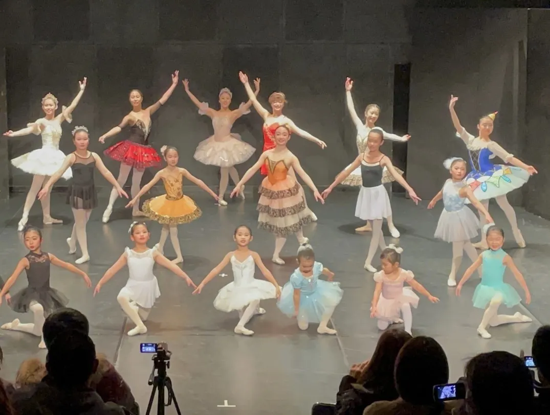 舞台のある会場でクラウンバレエスクールの発表会を開催する。