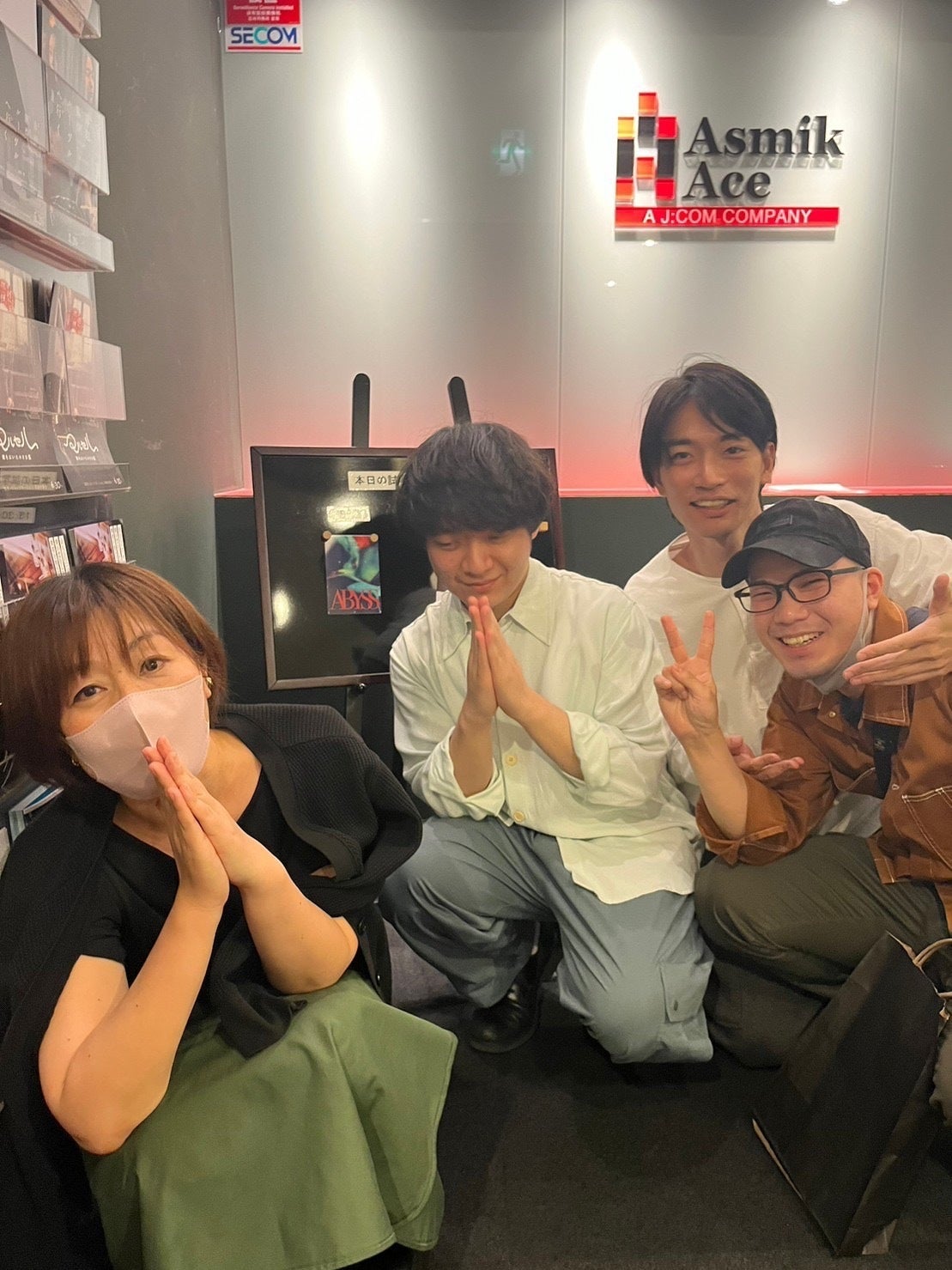 みなさまおはようございます!!須藤蓮です!!今日はこちらはめちゃくちゃ綺麗な快晴です!あんまりにも天気がいいので、今日は掃除機にとどまらず布団を干して、シーツを洗っちゃいました!!!最高です。というわけで、今日の活動報告です!!昨日は朝から、映画「ABYSSアビス」のポスターのデザインをしてくださったタグボートデザインの今井さんを訪ねました!「本当に素敵なメインビジュアルを作ってくださって本当にありがとうございました!!!」と最大限のお礼をお伝えさせていただきつつこの日はポスターチラシの”紙”についての打ち合わせ!!クラウドファンディングをしてくださった皆様からお預かりした貴重すぎる予算を一円も無駄にしないぞ!!という構えで、なるべくオーバースペックにならず、しかしビジュアルの持つ質感や作品のニュアンスを最大限表現できる紙について話し合いました!!悩む宣伝プロデューサーせっきーこと関谷さん。真剣です。今回は印刷会社さんに入っていただきながら、丁寧に色のバランスを作っていけることになりました!紙質の決定や色校正(色を丁寧に微調整していく過程)などについても今後報告できるかと思います!!色調整とか大好きな僕としては、ワクワクです!!!!さて、その後我々が向かったのは最近お世話になりまくっている、アスミックエース試写室!!お世話になった方々が多数ご来場くださって、最高にありがたい、あたたかい試写でした!「ワンダーウォール」「逆光」とずうっと並走&見守ってきて方々にやっと新作を見ていただけて胸がいっぱいで。「ようやく完成したんだなあ」と実感が湧いてきました。前回のスピーチでは緊張しまくりだったのですが、今回は感謝の気持ちでほぐれたのか落ち着いてこれからやっていきたいことをお伝えできた気もしています!!!!その後ロビーでは、愛と感謝が漂いまくっており、、六本木試写室のロビー温度が上昇しておりました!!!大人の方々がさすがに帰り始めてもえんえんと会話していた若者たちで集合写真!!!セッキーとゆっきー&今回CGを担当し、わざわざ大阪から試写に駆けつけてくれた伊垣さん。みなさま本当に感謝です!!!!!ではではーー今日も楽しみましょう!!!ーーーーーーーーーーーーーーーーーーーPSこれから須藤はFOL STUDY vol.2「How to break through myself」に向かいます!!みんながぱっかーんとなって、自分の才能に気がつけるような最高に愛が溢れる現場になりますように!!!今からとっても楽しみです!!!!↓↓https://forms.gle/8E189DtDzMKTFjas8もし来たくなったらぜひ直前でもご参加ください〜!!!