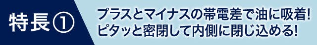 キトサンは吸着力に優れた食物繊維の一種で、プラス電荷を持っています。一方、油の表面はマイナスの電荷を帯びています。この「帯電差」により油の周囲を取り囲んでしまいます。