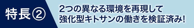 実際に利用される環境下での成分の働きを実証するべく、「食酢(酸性)」と「重曹水(アルカリ性)」を用いて実験を行い、どちらも優れた働きを確認しました。