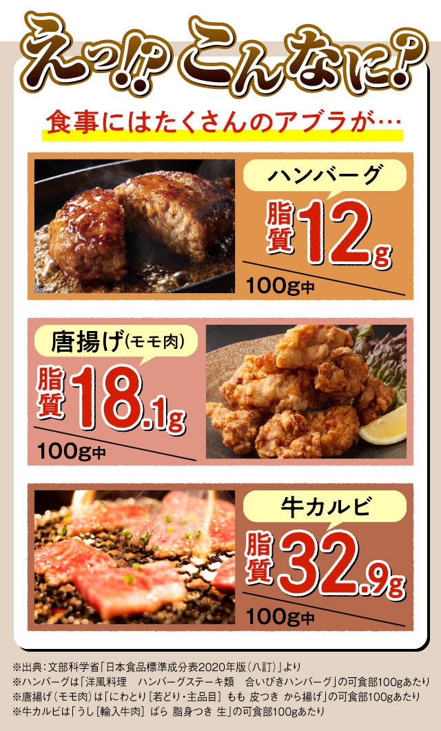 こうしたお悩みを解決するべく今回新たに開発したのが、強力な吸着力・密閉力で食事の油をケアする“肉食サポート専用”サプリメント『バイオオブラート』です。