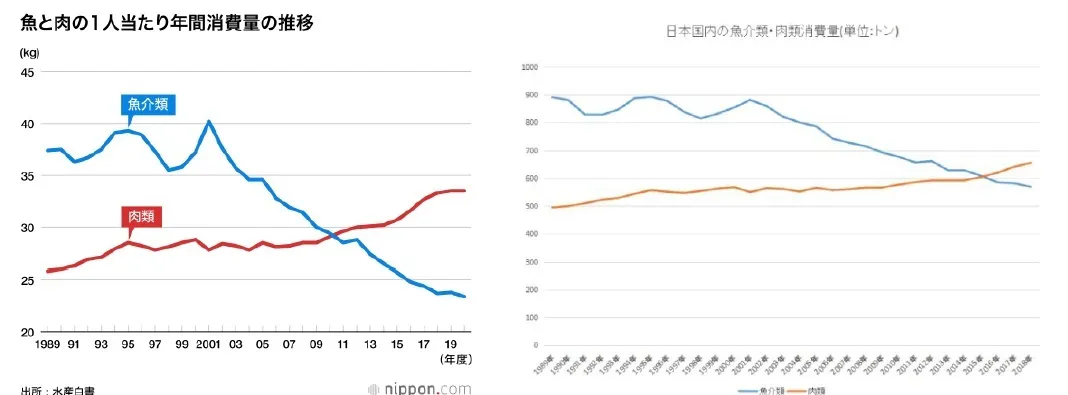 この通り年々魚離れが深刻化してきています。