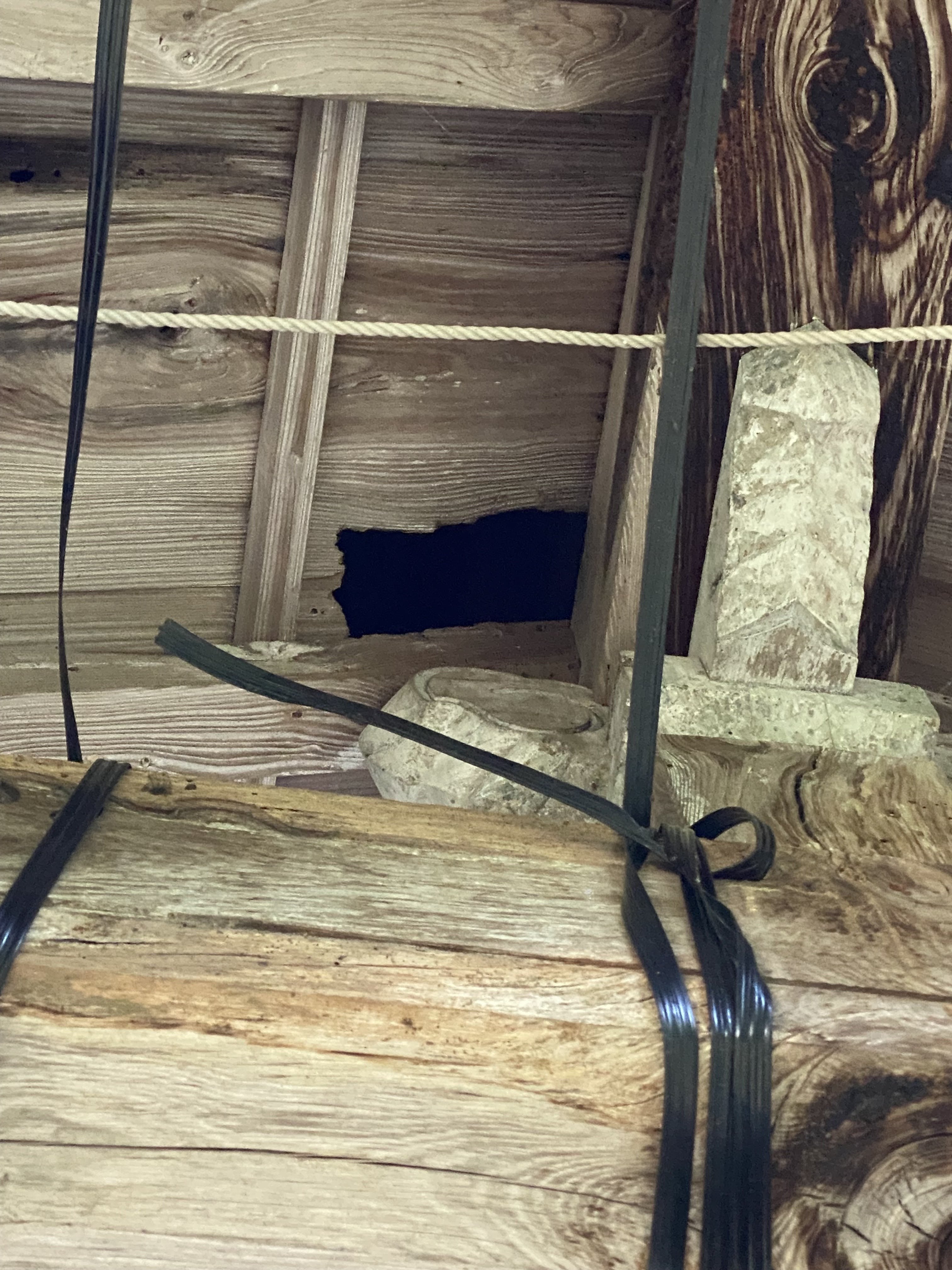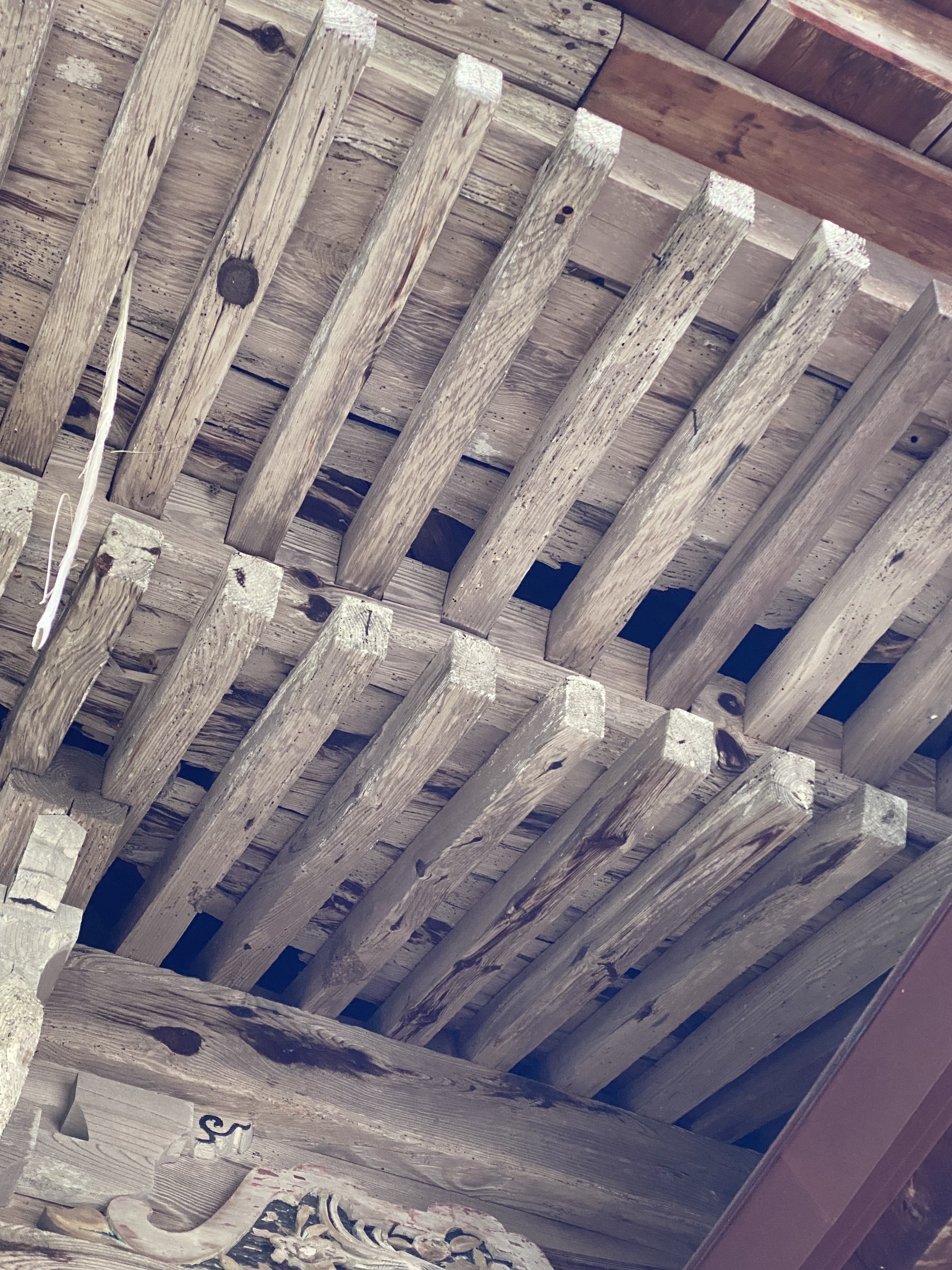 観音堂軒下から見る破損部分