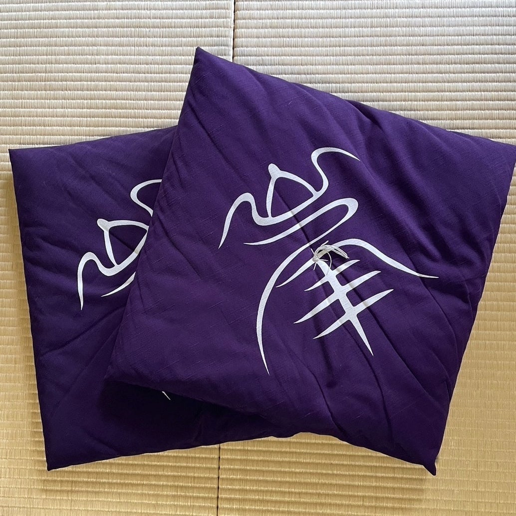 峯寺座布団2枚 峯寺オリジナル座布団です。紫生地に「峯」のロゴ入り。峯寺で使われているものと同じデザインです。 大きさも普通サイズなのでお座敷だけではなく、椅子や車の中などお好きな用途でお使いください。 限定3セットにさせて頂いております。
