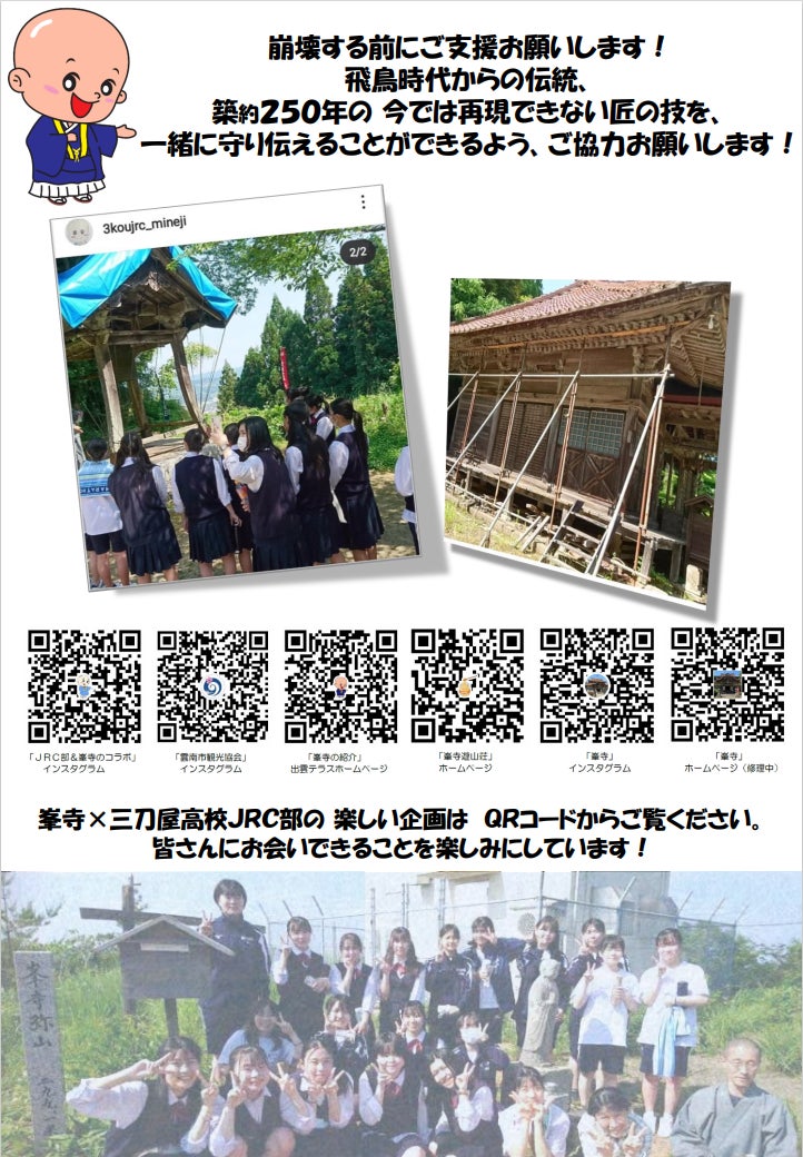 【三刀屋高校JRC部も峯寺クラウドファンディングを応援しています!!】