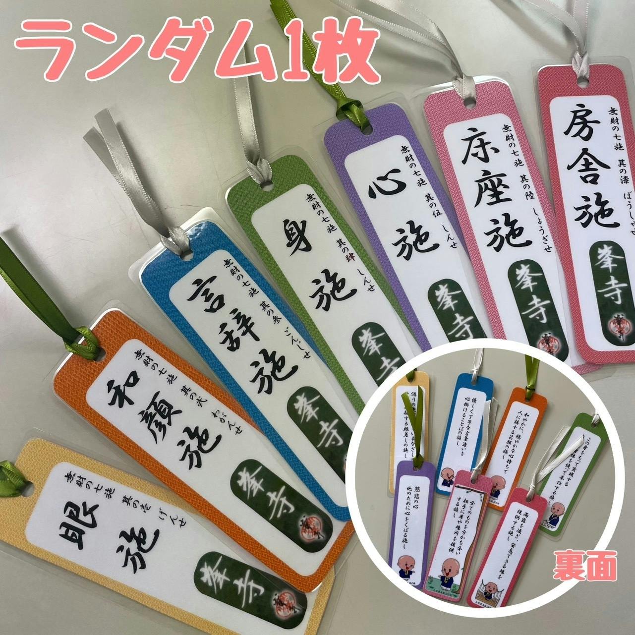 リターンのご紹介、今回も三刀屋高校JRC部の皆さんにデザインしていただいたものです。表面は「無財の七施」を1つずつ書き、裏面には解説が書いてあります。全部で7種類。