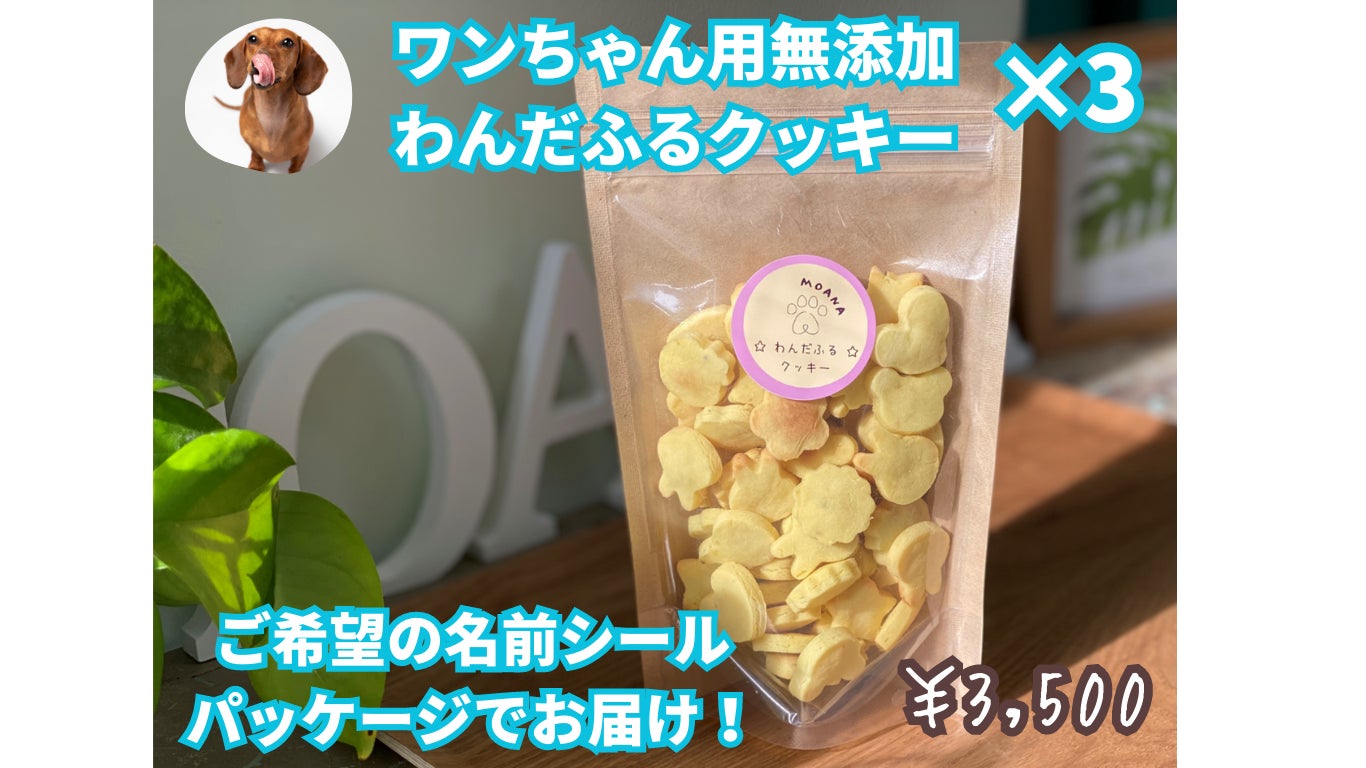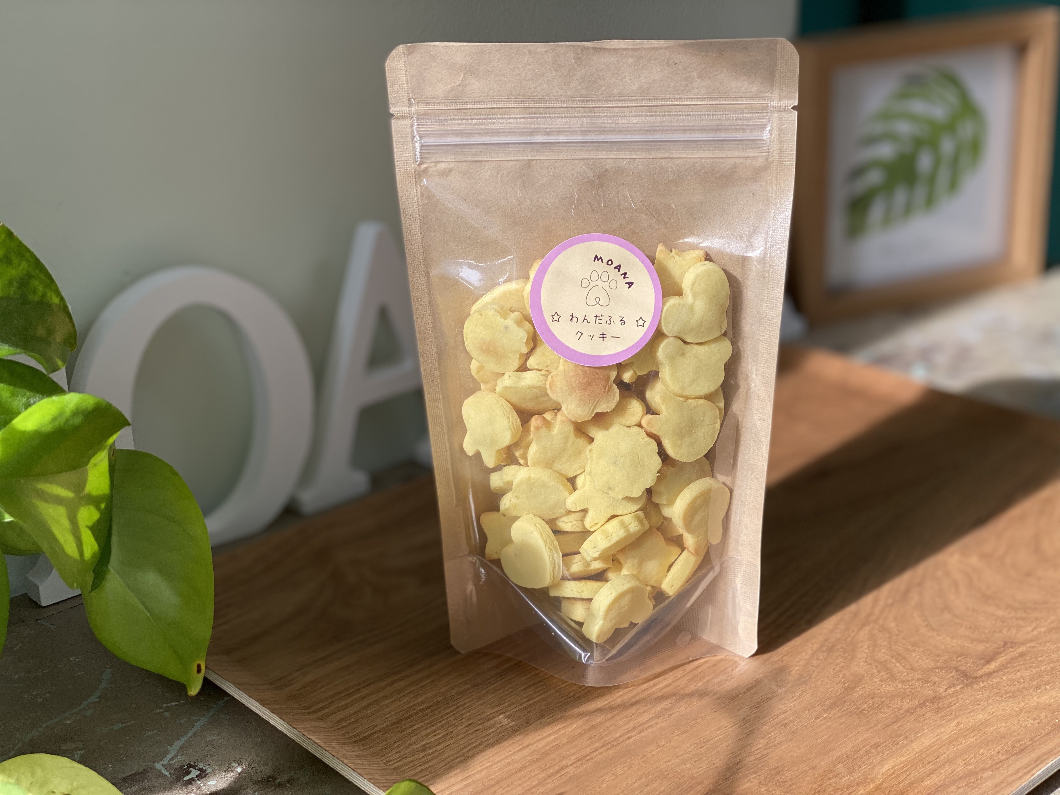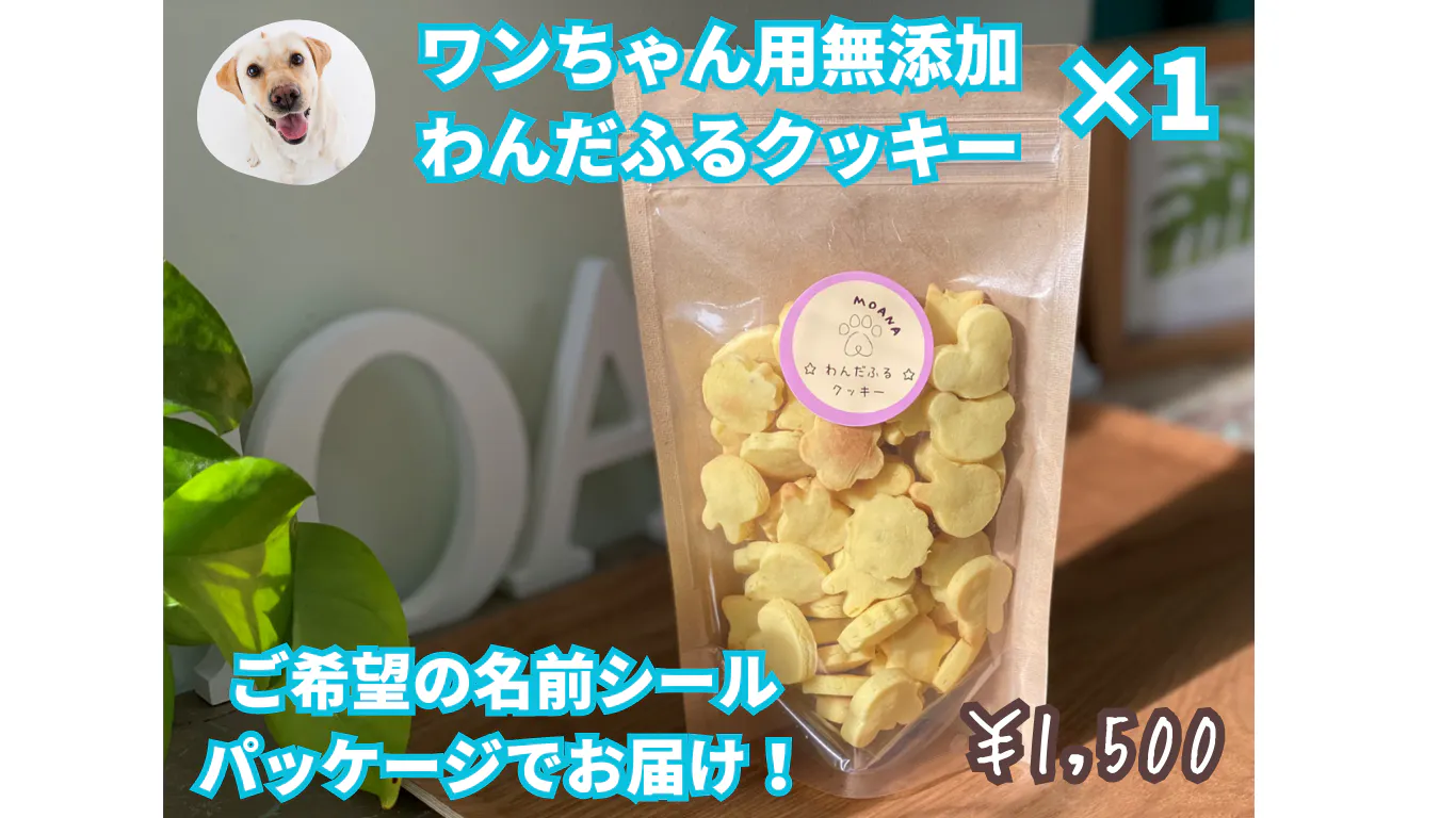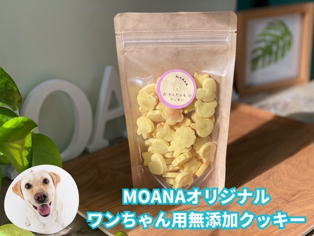 MOANAで開発した完全オリジナル商品!わんちゃんの体に優しい無添加・自然素材のみを用いたクッキーです。