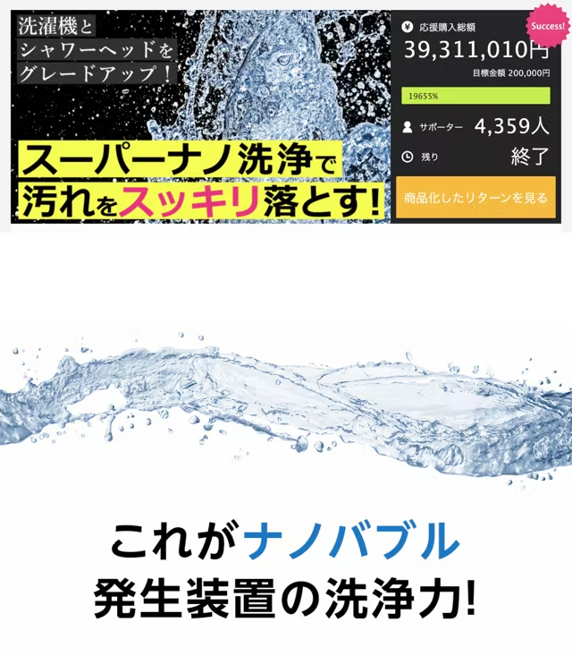 3月いっぱいで無事終了しました、スーパーナノバブル発生器「バブリッシモ」ですが、おかげさまで3000名以上の支援者の方から、総額4000万円を超えるご支援をいただくことができました。