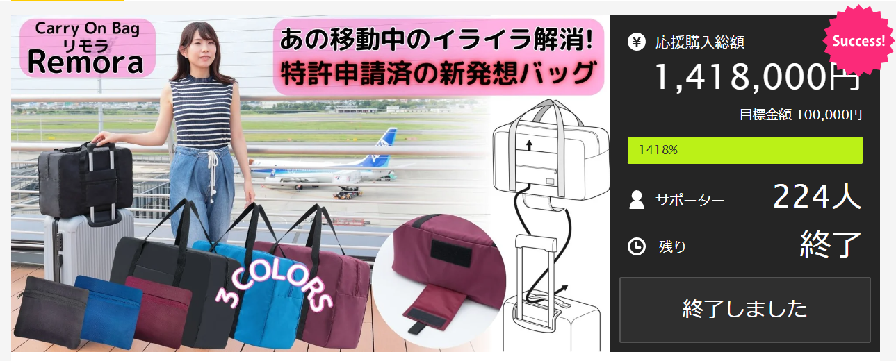 新発想のキャリーオンバッグで、皆さんの”荷物ストレス”を少しでも軽くできたら嬉しいです。