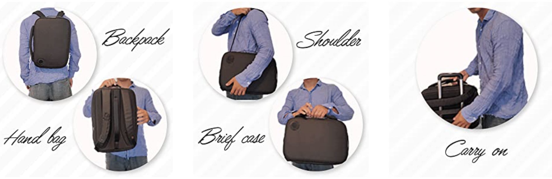 シューベルトSは、バックパック(リュックサック)、ショルダー(斜めがけ)、手提げ(ブリーフケース)縦・横、キャリー(旅行トランク)の5WAY。