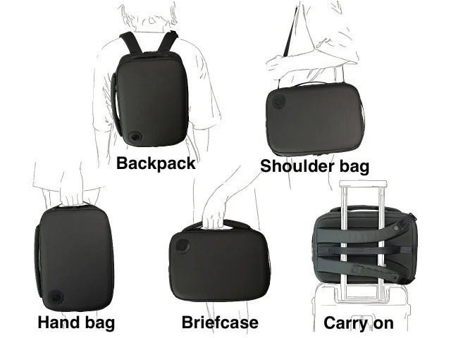 シューベルトLは、バックパック(リュックサック)、手提げ(ブリーフケース)縦・横、キャリー(旅行トランク)の4WAYでサイズ拡張可能。