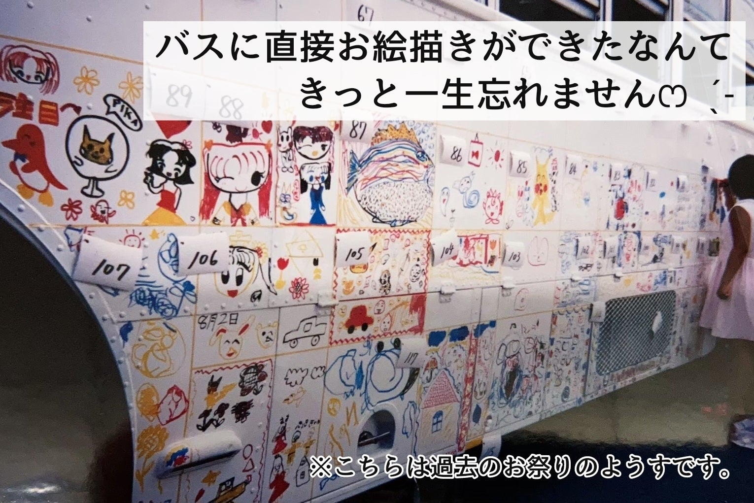 それから、このお祭りが発祥と言われている、バスに直接お絵描きできる「ラッピングバス」を今年も存続させたいと思っています。