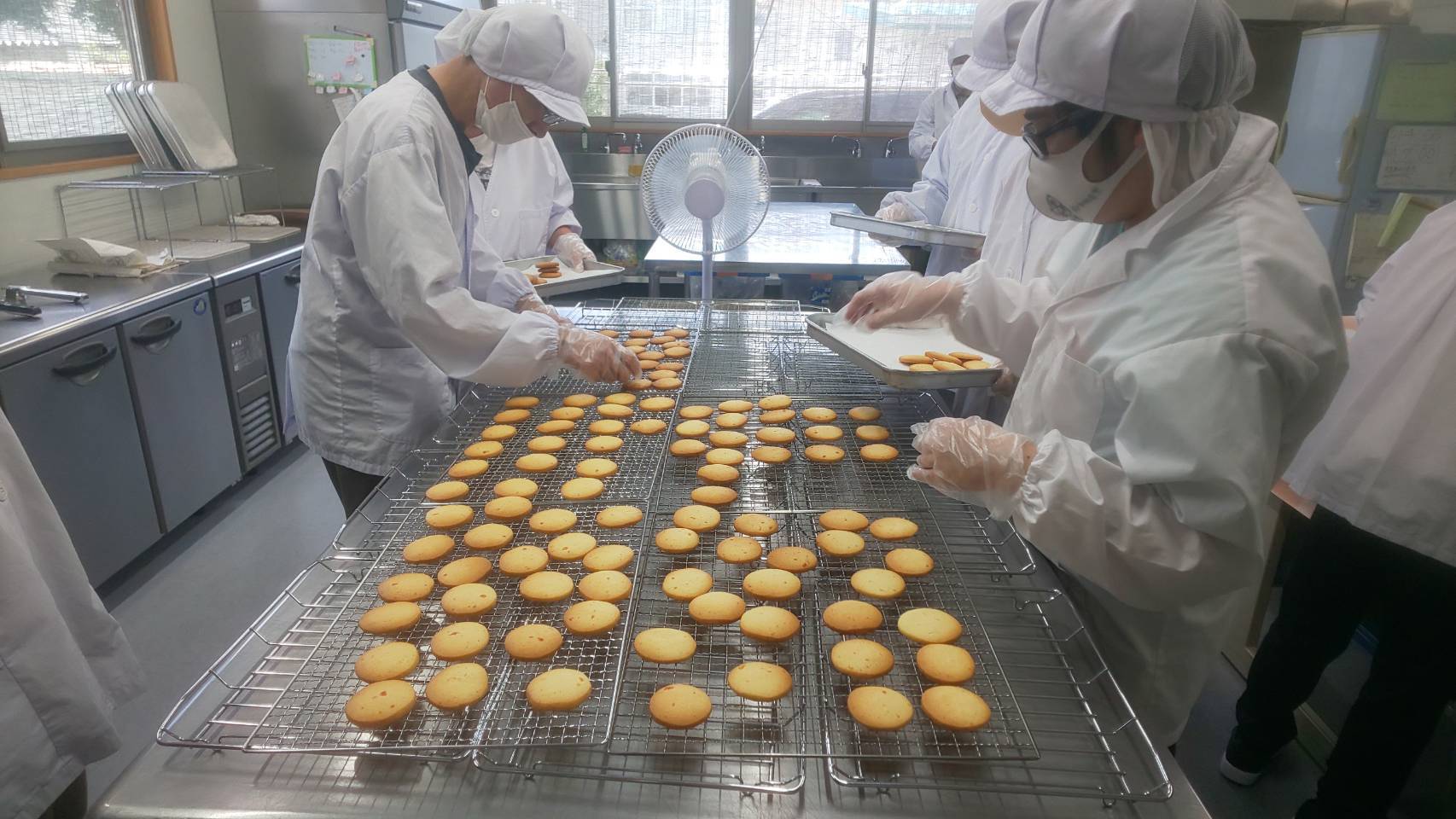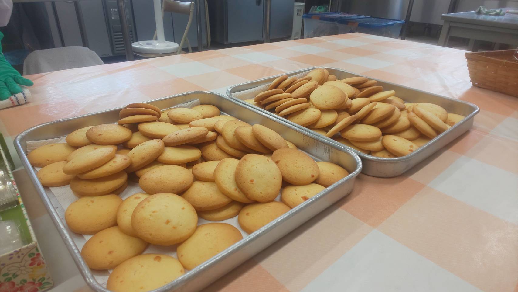 クッキーを焼く日は施設中が美味しい香りに包まれます。昼食前の午前中に作業をするので、お腹がグーグーとなってしまいます。お隣には保育園があり、園児たちも、換気扇から出てくる甘い香りに誘われ、笑顔を見せてくれています。