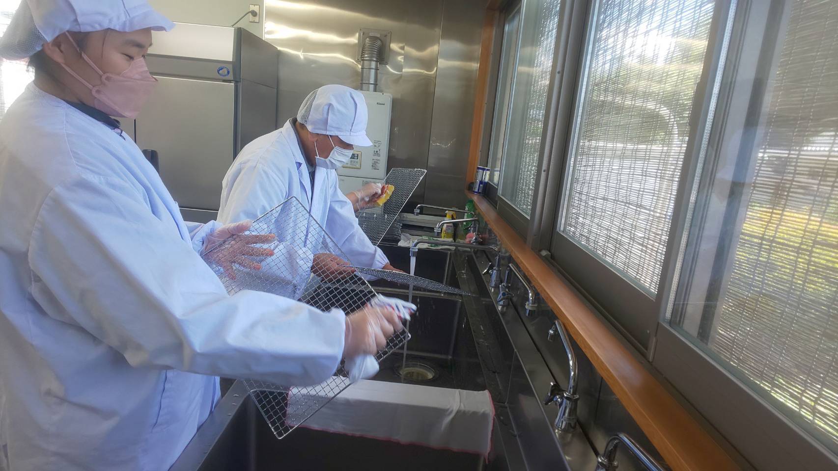 皆様にお送りするクッキーを作っております。生地捏ね、成型、焼、そして大切な工程の一つ「洗い物」の作業風景を撮影してみました。
