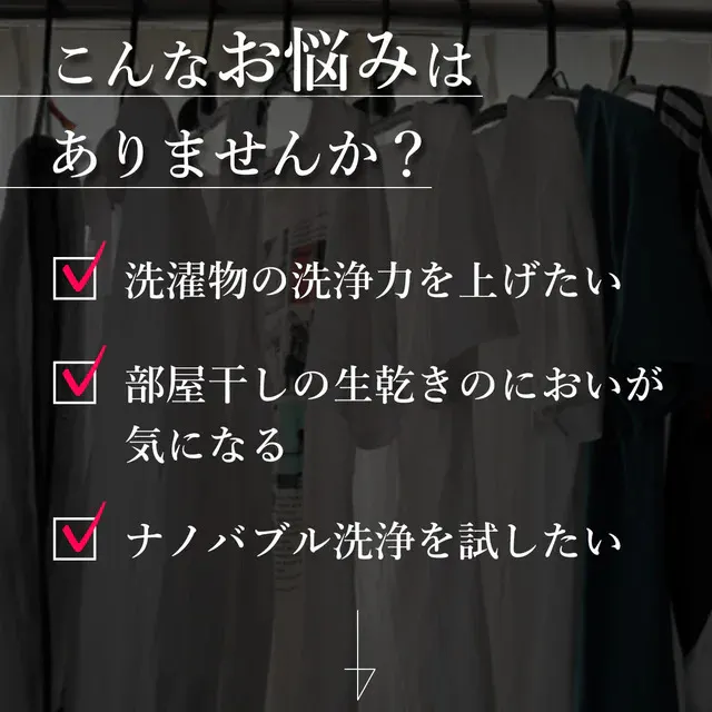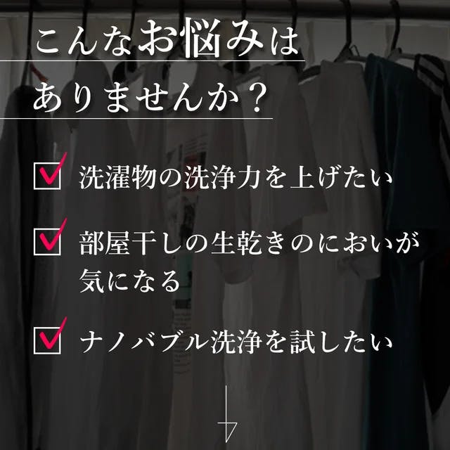今回は、弊社が油汚れを劇的に落とす洗濯洗剤を開発中、ふと見たナノバブルシャワーヘッドのTVCMに「これだ!」と思い、本プロジェクトを企画いたしました。