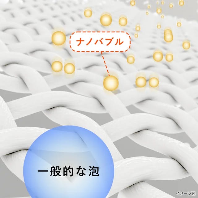 ナノバブルは一般的な泡と大きさが違い、極小の泡が繊維の奥まで入って汚れを落とす事ができます。